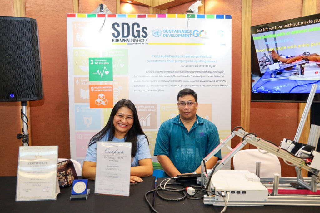 โดยภายในงานประชุมฯ ได้มีการจัดนิทรรศการนำเสนอผลงานวิจัยของมหาวิทยาลัยบูรพา คือ กิน-อยู่-ดี แพลตฟอร์ม ผลงานวิจัยของ รองศาสตราจารย์วิรุฬห์ ศรีบริรักษ์ คณะวิศวกรรมศาสตร์ และ การประดิษฐ์อุปกรณ์กระดกข้อเท้าและยกขาอัตโนมัติ (An automatic ankle pumping and leg lifting device) ผลงานวิจัยของ ผู้ช่วยศาสตราจารย์ นงนุช ล่วงพ้น,ผู้ช่วยศาสตราจารย์ ดร.ศิริรัตน์ เกียรติกูลานุสรณ์ และ ดร.กุลธิดา กล้ารอด คณะสหเวชศาสตร์