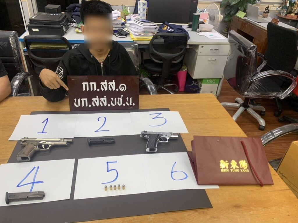 เมื่อวันที่ 22 มิถุนายน 2567 พล.ต.ท.ธิติ แสงสว่าง ผบช.น. พร้อมด้วย พล.ต.ต.นพศิลป์ พูลสวัสดิ์ รอง ผบช.น.,พล.ต.ต.ธีรเดช ธรรมสุธีร์ ผบก.สส.บช.น.,พ.ต.อ.เกียรติศักดิ์ สระทองออย รอง ผบก สส.ฯ,พ.ต.อ.วิชิต ถิรขจรวงศ์ ผกก.สส.1ฯ,พ.ต.ท.พีรบูรณ์ แก้วดู รอง ผกก.สส.1ฯ ,พ.ต.ท.เอกศิษฐ์ วรกิตติ์ฐากรณ์ รอง ผกก.สส.1ฯ ได้สั่งการให้ พ.ต.ต.พิสิทธิ์ เตชะ สว.กก.สส.1ฯ พร้อมชุดปฎิบัติการที่ 1 ได้ร่วมกันจับกุมตัว นายอภิวัฒน์ หรือแซม อายุ 26 ปี ภูมิลำเนา แขวงคลองกุ่ม เขตบึงกุ่ม กรุงเทพมหานคร โดยกล่าวหาว่ากระทำความผิดฐาน “มีอาวุธปืนและเครื่องกระสุนปืนไว้ในครอบครองโดยไม่ได้รับอนุญาต” พร้อมของกลางในคดี อาวุธปืนแบลงค์กันดัดแปลงลำกล้องสีเงิน ด้ามจับสีน้ำตาล จำนวน 1 กระบอก,อาวุธปืนแบลงค์กันดัดแปลงลำกล้องสีเงิน ด้ามจับสีดำ จำนวน 1 กระบอก และ กระสุนปืน ขนาด .380 จำนวน 5 นัด