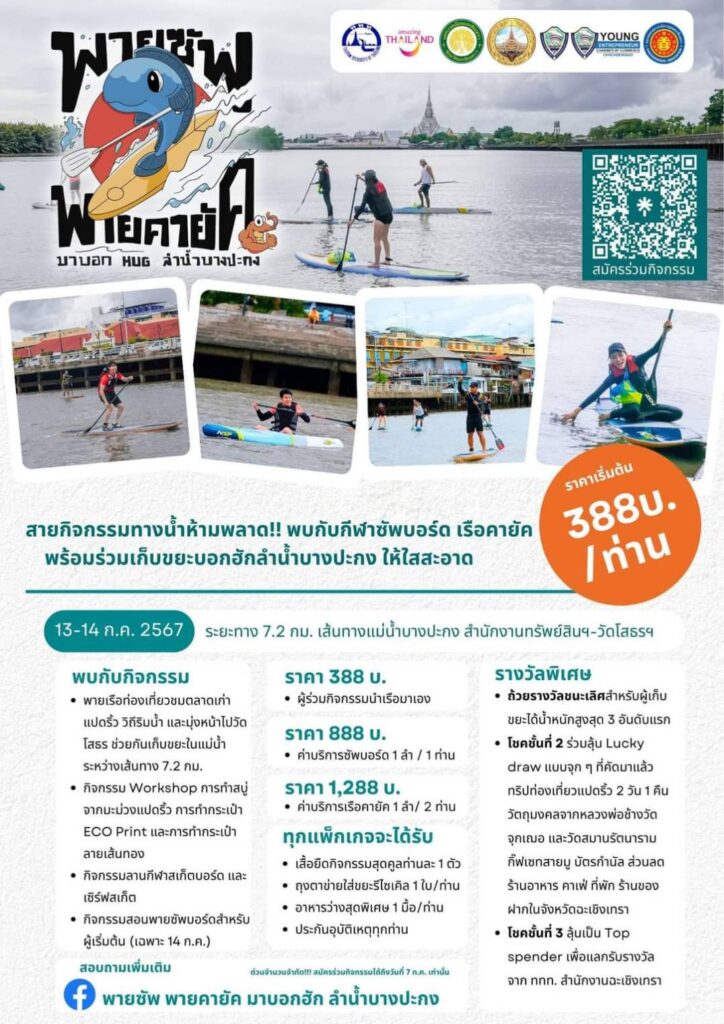 13-14 ก.ค. นี้พบกับกิจกรรมพายซัพบอร์ด และพายเรือคายัค ในรูปแบบการท่องเที่ยวทางน้ำ พร้อมบอกฮัก ลำน้ำบางปะกงด้วยการเก็บขยะที่ตกค้างอยู่ในแม่น้ำ