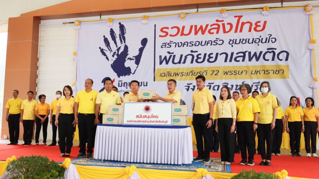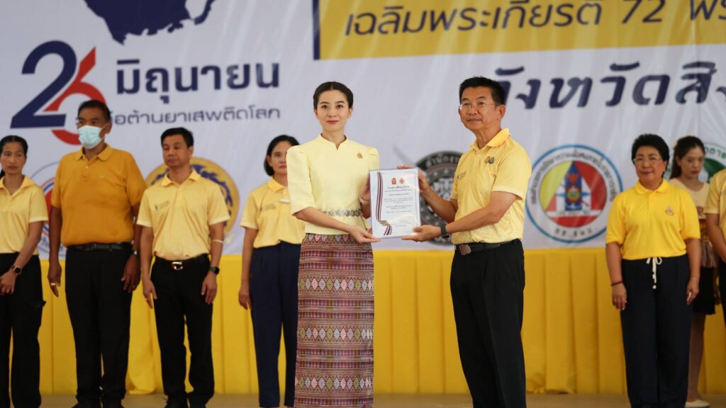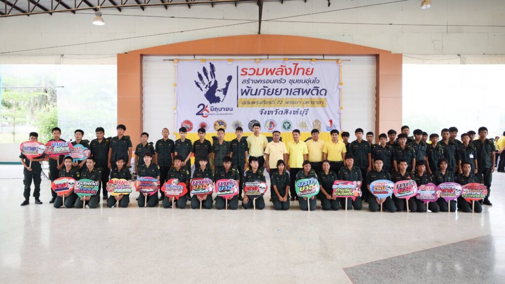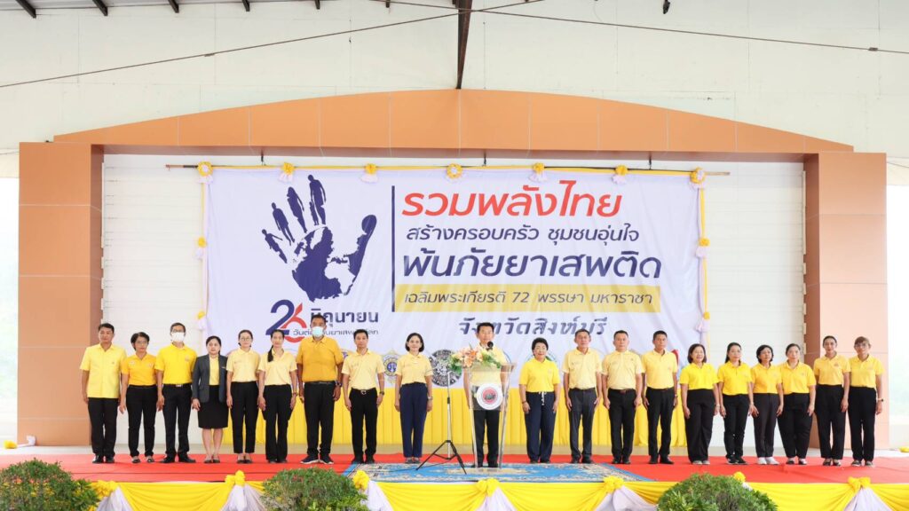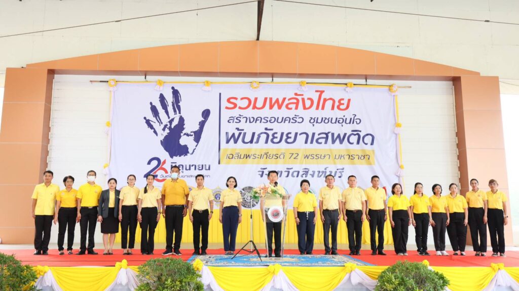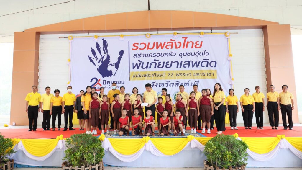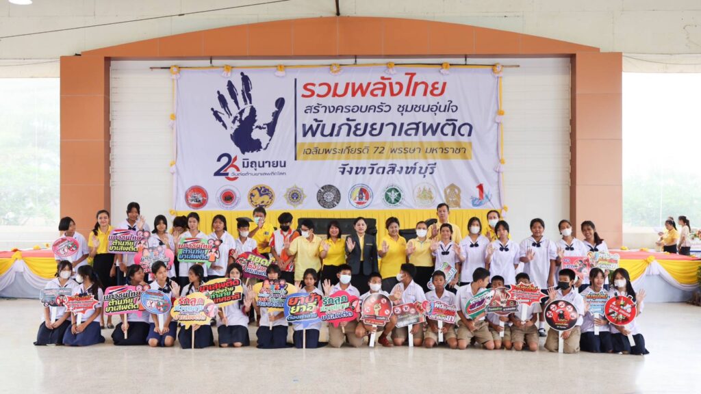 วันที่ 26 มิถุนายน 2567 เวลา 9.30 น.นายสุเมธ ธีรนิติ ผู้ว่าราชการจังหวัดสิงห์บุรี เป็นประธานอ่านสารเนื่องใน วันต่อต้านยาเสพติดโลก ปี 2567 นำพลังมวลชนกล่าวปฏิฏาณตนประกาศเจตนารมณ์ต่อต้านยาเสพติดและมอบใบเกียรติบัตรสถานศึกษาสีขาวปลอดภัยยาเสพติดและอบายมุข ภายใต้แนวคิดและคำขวัญ คือรวมพลังไทย พ้นภัยยาเสพติด 26 มิถุนายน วันต่อต้านยาเสพติดโลก ณ บริเวณอาคารเอนกประสงค์ นามกีฬาองค์การบริหารส่วนจังหวัดสิงห์บุรี โดยมี นางจีระพรรณ กาญจนประดิษฐ์ ผู้อำนวยการ ปปส.ภาค 1 นายนัฏฐ์กร ศิริผ่องแผ้ว นายอำเภอเมืองรักษาราชการแทนปลัดจังหวัดสิงห์บุรี นายกเหล่ากาชาดจังหวัดสิงห์บุรี หัวหน้าส่วนราชการ นายกองค์การบริหารส่วนจังหวัดสิงห์บุรี นักเรียน ทุกภาคส่วน พลังมวลชนเข้าร่วมกิจกรรม จำนวน 500 คน ภายในงานมีกิจกรรมการแสดงชมรม TO be number one โรงเรียนวัดศรัทธาภิรมย์ นิทรรศการป้องกันและปราบปรามยาเสพติดของสำนักงาน ปปส.ภาค 1 กิจกรรมกองทุนแม่ของแผ่นดินจังหวัดสิงห์บุรี ป้องกันยาเสพติดในสถานประกอบการ และป้องกันยาเสพติดในสถานศึกษาของโรงเรียนบางระจันวิทยา