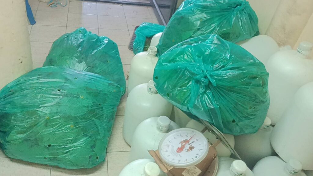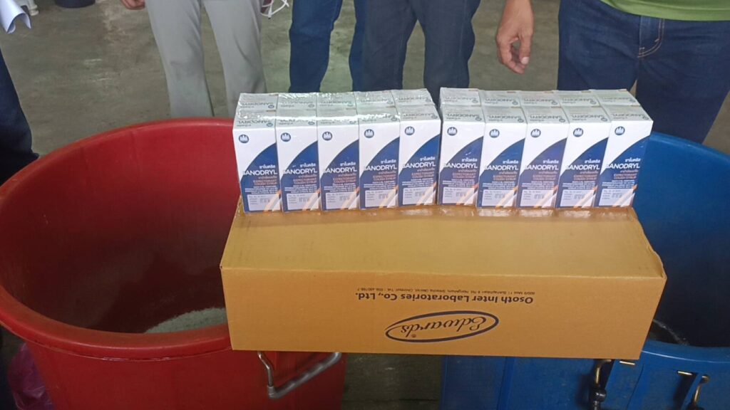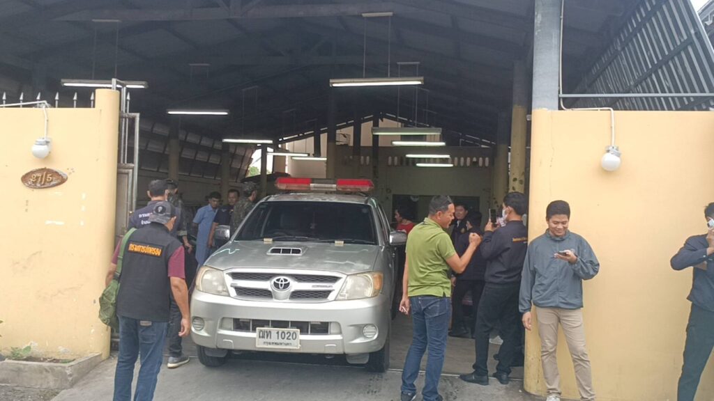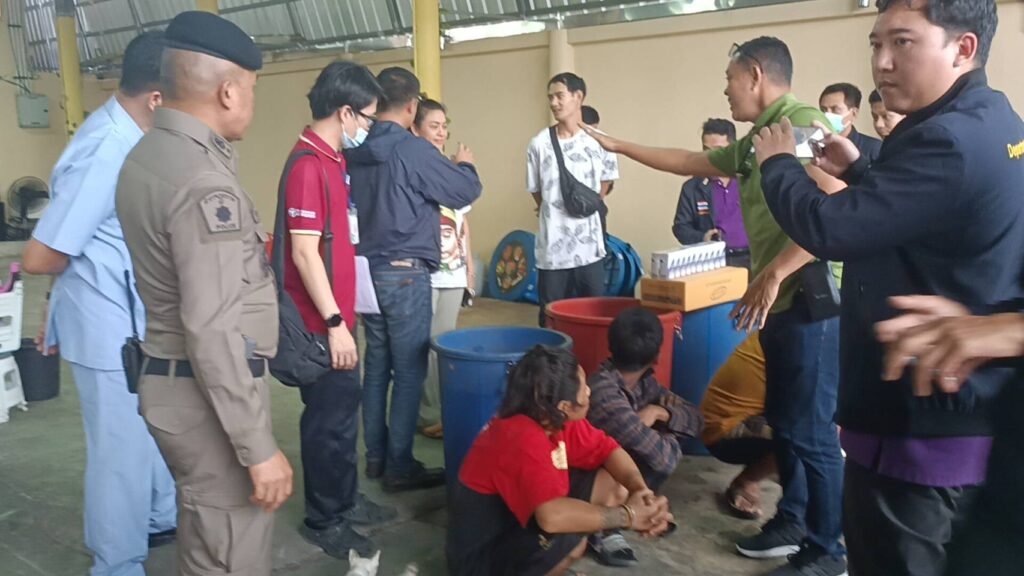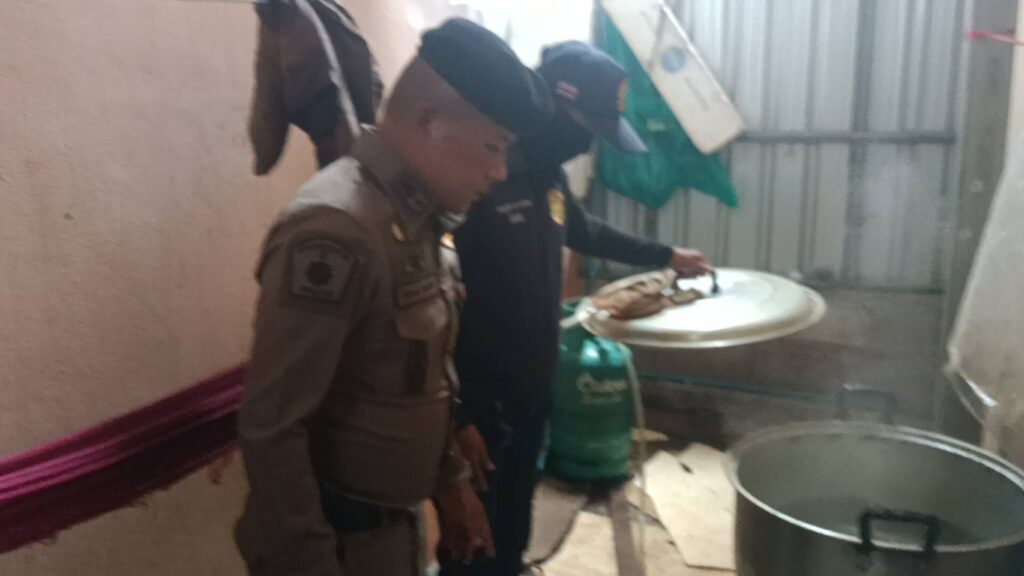 เจ้าหน้าที่ฯดำเนินการตรวจสอบสถานที่ดังกล่าว มีลักษณะคล้ายล้งแปรรูปสัตว์น้ำ ด้านหน้ามีประตูรั้วเหล็กเปิดไว้ และสามารถสังเกตุพบแรงงานต่างด้าวจำนวนมาก กำลังนั่งดื่มน้ำต้มพืชกระท่อมอยู่ภายใน เจ้าหน้าที่ฯจึงได้ตรวจสอบด้านใน พบหม้อน้ำต้มพืชกระท่อมตั้งอยู่บนเตาแก๊สหุงต้ม กากพืชกระท่อมถูกทิ้งอยู่ในบริเวณใกล้เคียง น้ำต้มพืชกระท่อมบรรจุในถังและในขวดพลาสติกจำนวนมาก และยังพบยาน้ำแก้ไอชนิดต่างๆ จำนวนมาก