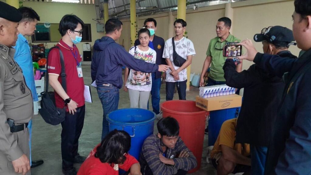 วันที่ 26 มิถุนายน 2567 เวลาประมาณ 17.30 น. ผู้สื่อข่าวรายงานว่า นายสิริพงษ์ กลัดเจริญ ปลัดอำเภอเมืองสมุทรสาคร พร้อมด้วย พ.ต.ท.โสภาส ถนนทิพย์ สวป.สภ.เมืองสมุทรสาคร และเจ้าหน้าที่สำนักงานสาธารณสุขจังหวัด สำนักงานจัดหางานจังหวัด ฝ่ายปกครองตำบลบางหญ้าแพรก และสมาชิกกองอาสารักษาดินแดนอำเภอเมืองสมุทรสาคร ดำเนินการตรวจสอบข้อเท็จจริงตามเรื่องร้องเรียน กรณีแรงงานต่างด้าวลักลอบจำหน่ายน้ำต้มพืชกระท่อม โดยมีการตั้งโต๊ะสำหรับให้แก่แรงงานต่างด้าวนั่งรับประทานกัน ในพื้นที่ ต.บางหญ้าแพรก อ.เมืองฯ จ.สมุทรสาคร