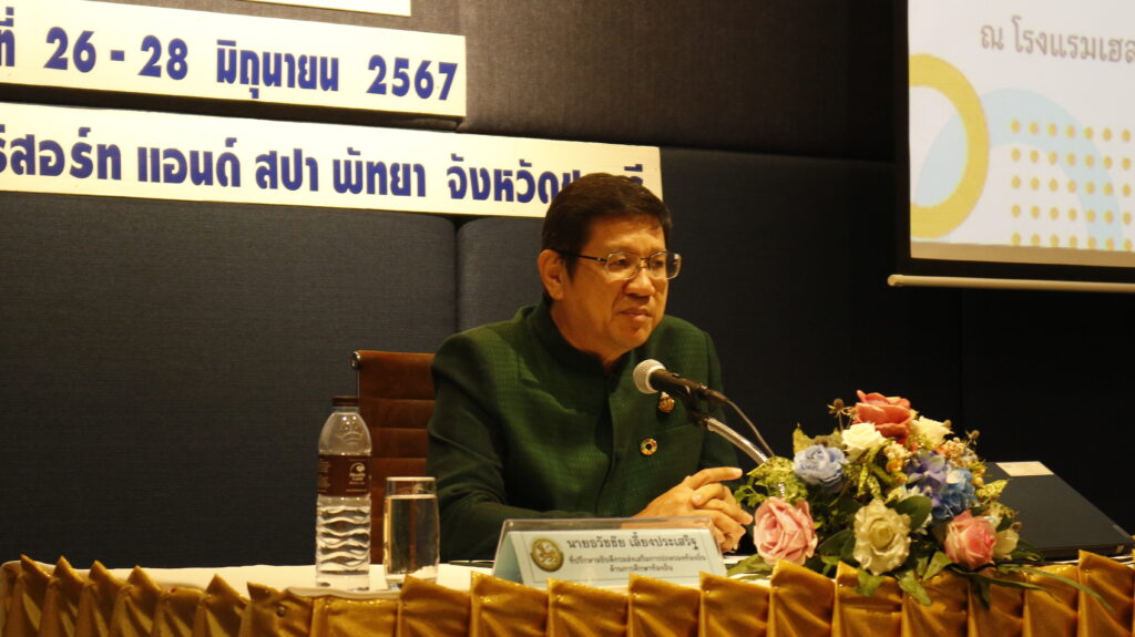 (26 มิถุนายน 2567) ณ โรงแรมเฮลท์แลนด์ รีสอร์ท แอนด์ สปา พัทยา อำเภอบางละมุง จังหวัดชลบุรี ท่าน ธวัชชัย เลี้ยงประเสริฐ ที่ปรึกษาอธิบดีกรมส่งเสริมการปกครองท้องถิ่น
