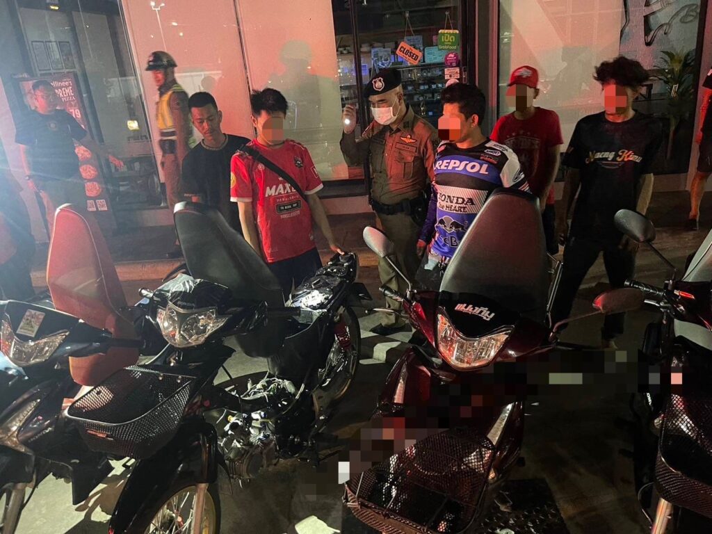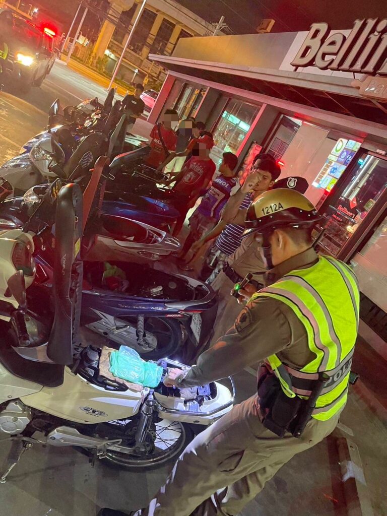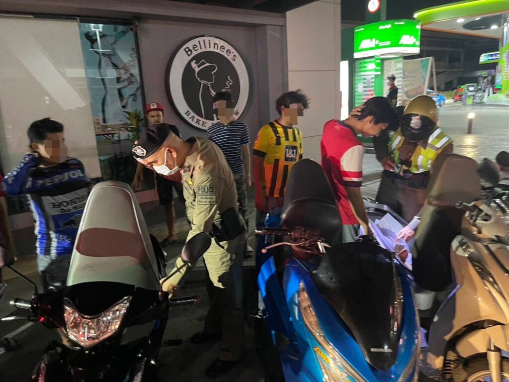 ขณะเดียวกันเจ้าที่สายตรวจอีกชุดได้พบกลุ่มวัยรุ่นเกาะกลุ่มจอดรถจักรยานยนต์อยู่ในปั๊มน้ำมันบางจาก ถ.รามอินทรากม.9 เมื่อเข้าไปตรวจสอบพบรถจักรยานยนต์มีการดัดแปลงท่อไอเสีย จำนวน 6 คัน เจ้าที่จึงทำการตรวจยึดรถไว้ตรวจาอบ