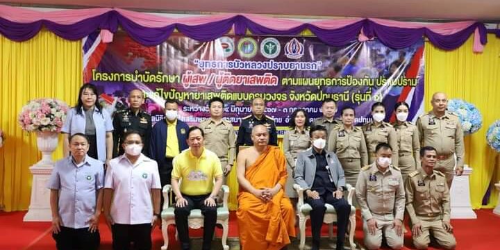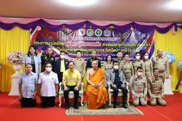 เมื่อวันที่ 27 มิถุนายน พ.ศ.2567 เวลา 11.00 น. ณ มูลนิธิศูนย์ส่งเสริมพระพุทธศาสนาแห่งประเทศไทย ตำบลหน้าไม้ อำเภอลาดหลุมแก้ว จังหวัดปทุมธานี นายภาสกร บุญญลักษม์ ผู้ว่าราชการจังหวัดปทุมธานี เป็นประธานพิธีเปิดโครงการบำบัดรักษาผู้เสพ/ผู้ติดยาเสพติด ตามแผนยุทธการป้องกันและปราบปรามและแก้ไขปัญหาเสพติดแบบครบวงจร จังหวัดปทุมธานี ประจำปี พ.ศ.2567 ณ มูลนิธิศูนย์ส่งเสริมพระพุทธศาสนาแห่งประเทศไทย ตำบลหน้าไม้ อำเภอลาดหลุมแก้ว จังหวัดปทุมธานี โดยมีพระครูวชิรรัตนสุนทร ประธานคณะกรรมการมูลนิธิศูนย์ส่งเสริมพระพุทธศาสนาแห่งประเทศไทย นายธนากร คัยนันท์ ที่ปรึกษาการป้องกันและปราบปรามยาเสพติด พ.อ.วินัย อภัยกุลชร รอง ผอ.รมน.จังหวัดปทุมธานี นายแพทย์ภุชงค์ ไชยชิน นายแพทย์สาธารณสุขจังหวัดปทุมธานี นางสาวกันตรัตน์ เริ่มสูงเนิน ปลัดจังหวัดปทุมธานี พ.ต.อ.วรยุทธ พงษ์ตัน ผู้กำกับการสถานีตำรวจภูธรอำเภอลาดหลุมแก้ว หัวหน้าส่วนราชการจังหวัดปทุมธานี คณะกรรมการอำนวยการ และ คณะทำงานดำเนินการตามแผนยุทธการป้องกันและปราบปรามและแก้ไขปัญหาเสพติดฯ ซึ่งโครงการนี้มีผู้เข้ารับการบำบัดรักษาผู้เสพ/ผู้ติดยาเสพติด จำนวน 100 คน เข้าร่วมพิธีเปิดโครงการฯ