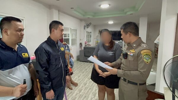 จากการตรวจค้นเจ้าหน้าที่สามารถจับกุมผู้ต้องหาตามหมายจับศาลอาญา ความผิดฐาน “ร่วมกันจัดให้มีการเล่นพนันทางสื่ออิเล็กทรอนิกส์, สมคบฟอกเงิน และ ร่วมกันฟอกเงิน” ได้ 6 ราย ประกอบด้วย น.ส.ภัทชา (ขอสงวนนามสกุล) อายุ 41 ปี, น.ส.สุดารัตน์ (ขอสงวนนามสกุล) อายุ 36 ปี, นายชนะเดช (ขอสงวนนามสกุล) อายุ 29 ปี, น.ส.วรรณนภา (ขอสงวนนามสกุล) อายุ 28 ปี, นายกวินท์พัฒน์ (ขอสงวนนามสกุล) อายุ 26 ปี และ น.ส.ภัทราพร (ขอสงวนนามสกุล) อายุ 25 ปี