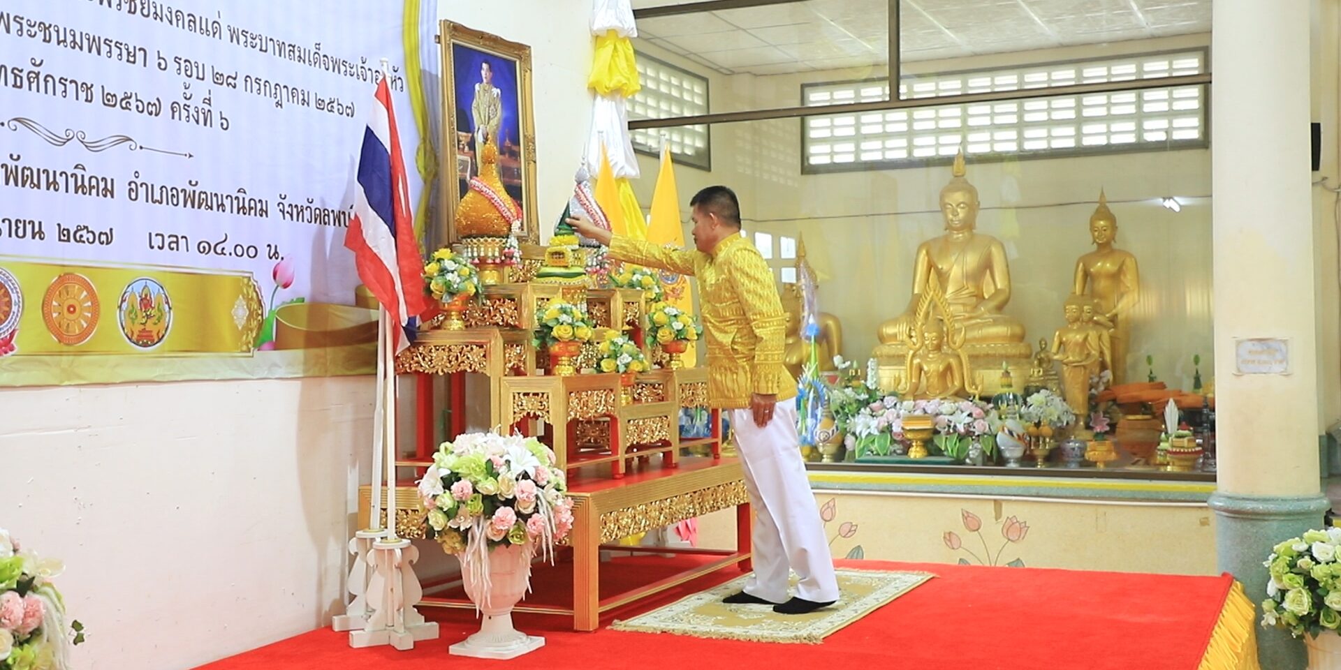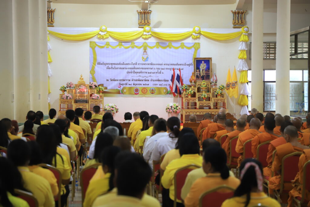 วันที่ 28 มิถุนายน 2567 เวลา 14.00 น. ที่ วัดพัฒนาธรรมาราม ตำบลพัฒนานิคม อำเภอพัฒนานิคม จังหวัดลพบุรี พระครูภัทรธรรมคุณ เจ้าคณะอำเภอพัฒนานิคม เจ้าอาวาสวัดพัฒนาธรรมาราม เป็นประธานฝ่ายสงฆ์ ว่าที่ร้อยตรี ทรงพล แป้นแก้ว รองผู้ว่าราชการจังหวัดลพบุรี เป็นประธานฝ่ายฆราวาส ในพิธีเจริญพระพุทธมนต์เฉลิมพระเกียรติ ถวายพระพรชัยมงคลแด่ พระบาทสมเด็จพระเจ้าอยู่หัว เนื่องในโอกาสมหามงคลเฉลิมพระชนมพรรษา 6 รอบ 28 กรกฎาคม 2567 ซึ่งครั้งนี้เป็น ครั้งที่ 6 โดยมี คณะสงฆ์จังหวัดลพบุรี พร้อมด้วย ตุลาการ ทหาร ตำรวจ หัวหน้าส่วนราชการ ข้าราชการและพุทธศาสนิกชนชาวจังหวัดลพบุรีร่วมพิธี