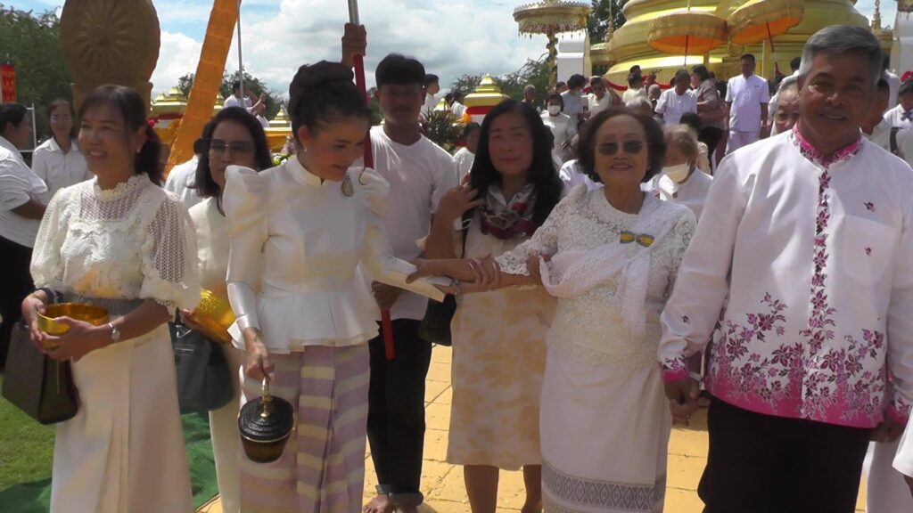 โดยช่วงเช้า มีพิธีอัญเชิญพระบรมสารีริกธาตุ โดยขบวนแห่อย่างยิ่งใหญ่ สวยงาม จากตลาด ตำบลดงขุย อำเภอชนแดน ไปยังบริเวณพิธี จากนั้น อัญเชิญพระบรมสารีริกธาตุ ลงจากรถแห่ เพื่ออัญเชิญขึ้นประดิษฐาน ใน พระพุทธสุวรรณเจดีย์ และ พิธี อัญเชิญเทวดา และ พิธีเจริญพระพุทธมนต์ พร้อม เจริญชัยมงคลคาถา