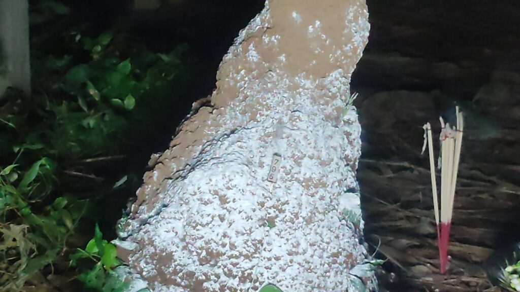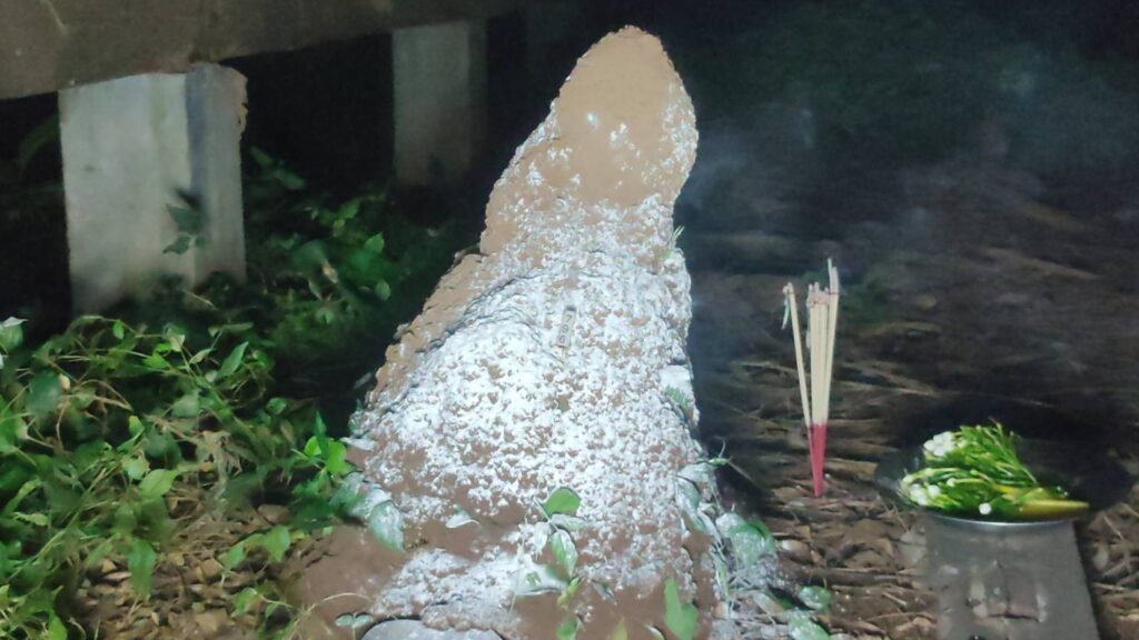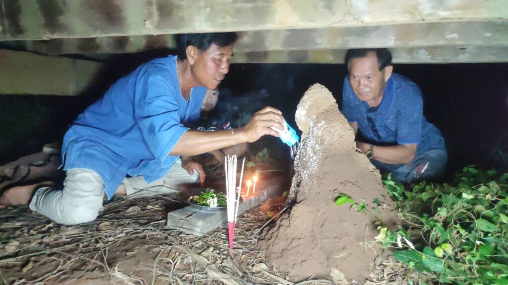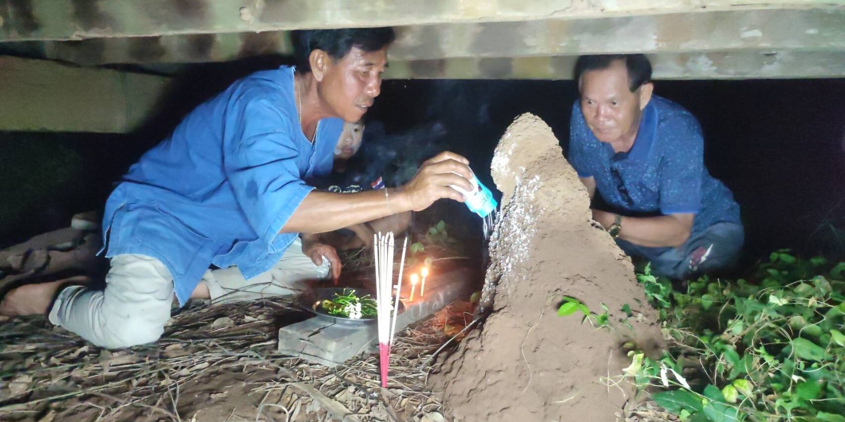 ซึ่งวันนี้ นายสมส่วน ด้วงคำจันทร์ อายุ63 ปี พร้อมกับชาวบ้านหลายคน ก็ได้ช่วยกันทำพิธีขอขมาพร้อมทั้งนำดอกไม้ ธูป เทียน มาประกอบพิธี ขอเลขเด็ดจากจอมปลวกแห่งนี้ โดยชาวบ้าน ต่างมีความเชื่อว่า จอมปลวกที่ปรากฎนั้นเป็นปาฏิหาริย์เกิดขึ้น จึงได้ทำการทำพิธีขอเลขเด็ดจอมปลวกประหลาดคล้ายปลัดขิก เชื่อว่าจะนำโชคลาภมาให้ จึงได้แต่งขันธ์ 5 บูชาตามความเชื่อ และนำธูปเสี่ยงทายมาจุด พร้อมนำแป้งฝุ่น ลูบเบาๆ ที่จอมปลวก แล้วใช้ไฟส่องดูตัวเลข บางคนก็นำโทรศัพท์เปิดกล้องถ่ายรูป ซูมดูเลขเด็ด ก่อนได้เลขสมใจ 655 , 30 ส่วนธูปเสี่ยงทายหรือธูปตัวเลขเห็นเลข796 เตรียมนำไปเสี่ยงโชค เสี่ยงดวง ในช่วงโค้งสุดท้าย วันหวยออก