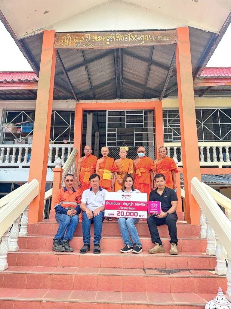 ทางด้านนางวราภรณ์ ม่วงเล็ก เจ้าของร้านแว่นตาชัญญา ออฟติค ได้กล่าวว่า “ ทางร้านได้ จัดทำโครงการ ยิ่งให้ ยิ่งสุขปี2 เพื่อคืนกำไรให้กับสังคมทุกๆปี สำหรับปีนี้ทางครอบครัวเห็นว่าพระภิกษุสงฆ์ส่วนใหญ่อายุมากอาจจะมีปัญหาทางด้านสายตา จึงได้สำรวจและถวายแว่นตาเพื่อการมองเห็นให้ขัดเจนขึ้นให้กับพระภิกษุสงฆ์ ตามวัดต่างในอำเภอทับคล้อ และอำเภอวังทรายพูน รวม 19รูป รวมเป็นเงินทั้งสิ้น20,000.-บาท โดยเป็นการทำบุญเพื่อเป็นมงคลต่อชีวิตและครอบครัวอีกทั้งเป็นการทำบุญในเดือนเกิดอีกด้วย ”