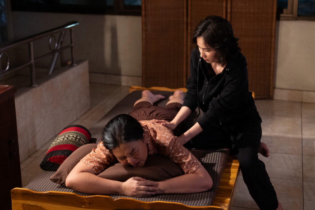 ยาใจ ช่วยนวดคอและไหล่ให้ โกหย่วน หลังจากเห็นขยับไหล่ไปมา ซึ่งป้า สมจิต มาเห็นก็เข้าใจผิดหนีไปอีก เมื่อกลับมาร้านก็บอกขอเลิกกับ โกหย่วน ยาใจ ตกใจพยายามหาทางช่วยพร้อมใช้วิธีนวดสร้างสัมพันธ์คู่รัก ซึ่ง ชาติชาย สงสัยว่าการนวดให้กันจะช่วยได้เหรอ ยาใจ จึงนวดให้ชาติชาย ทำให้เขารู้สึกผ่อนคลายและสบายมาก จากการกระทำของ ยาใจ กับพ่อ ทำให้ ชมพู ไม่พอใจ