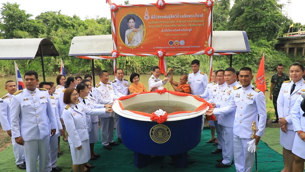 วันที่ 3 กรกฎาคม 2567 เวลา 07.30 น. ณ วัดสิงห์ทอง ตำบลบางขันหมาก อำเภอเมืองลพบุรี จังหวัดลพบุรี นายอำพล อังคภากรณ์กุล ผู้ว่าราชการจังหวัดลพบุรี นำข้าราชการตุลาการ ทหาร ตำรวจ ข้าราชการพลเรือน และพสกนิกรชาวจังหวัดลพบุรี ทุกหมู่เหล่า ร่วมเจริญพระพุทธมนต์ ถวายพระราชกุศล เนื่องในโอกาสวันคล้ายวันประสูติ สมเด็จพระเจ้าน้องนางเธอ เจ้าฟ้าจุฬาภรณวลัยลักษณ์ อัครราชกุมารี กรมพระศรีสวางควัฒน วรขัตติยราชนารี และพิธีตักบาตรพระสงฆ์ จำนวน 68 รูป จากนั้นในเวลา 08.30 น. ผู้ว่าราชการจังหวัดฯ ได้นำพสกนิกรทุกหมู่เหล่า ทำพิธีปล่อยพันธุ์สัตว์น้ำ จำนวน 68,999 ตัว ณ ท่าน้ำวัดสิงห์ทอง ตำบลบางขันหมาก อำเภอเมืองลพบุรี จังหวัดลพบุรี เพื่อถวายเป็นพระราชกุศล สมเด็จพระเจ้าน้องนางเธอ เจ้าฟ้าจุฬาภรณวลัยลักษณ์ อัครราชกุมารี กรมพระศรีสวางควัฒน วรขัตติยราชนารี ด้วยความสำนึกในพระมหากรุณาธิคุณเป็นล้นพ้น สมเด็จพระเจ้าน้องนางเธอ เจ้าฟ้าจุฬาภรณวลัยลักษณ์ อัครราชกุมารี กรมพระศรีสวางควัฒน วรขัตติยราชนารี ประสูติ 4 กรกฎาคม พ.ศ. 2500 เป็นพระราชธิดาพระองค์เล็กในพระบาทสมเด็จพระมหาภูมิพลอดุลยเดชมหาราช บรมนาถบพิตรกับสมเด็จพระนางเจ้าสิริกิติ์ พระบรมราชินีนาถ พระบรมราชชนนีพันปีหลวง ทรงเป็นพระโสทรกนิษฐภคินีในพระบาทสมเด็จพระวชิรเกล้าเจ้าอยู่หัว ทรงบำเพ็ญพระกรณียกิจด้านวิทยาศาสตร์ การแพทย์ และด้านสิ่งแวดล้อม ทรงพระวิริอุตสาหะ และพระปณิธานอันแน่วแน่ในการบำเพ็ญพระกรณียกิจด้วยพระหฤทัยเปี่ยมด้วยพระเมตตากรุณา เพื่อบำบัดทุกข์ บำรุงสุขแก่อาณาประชาราษฏร์