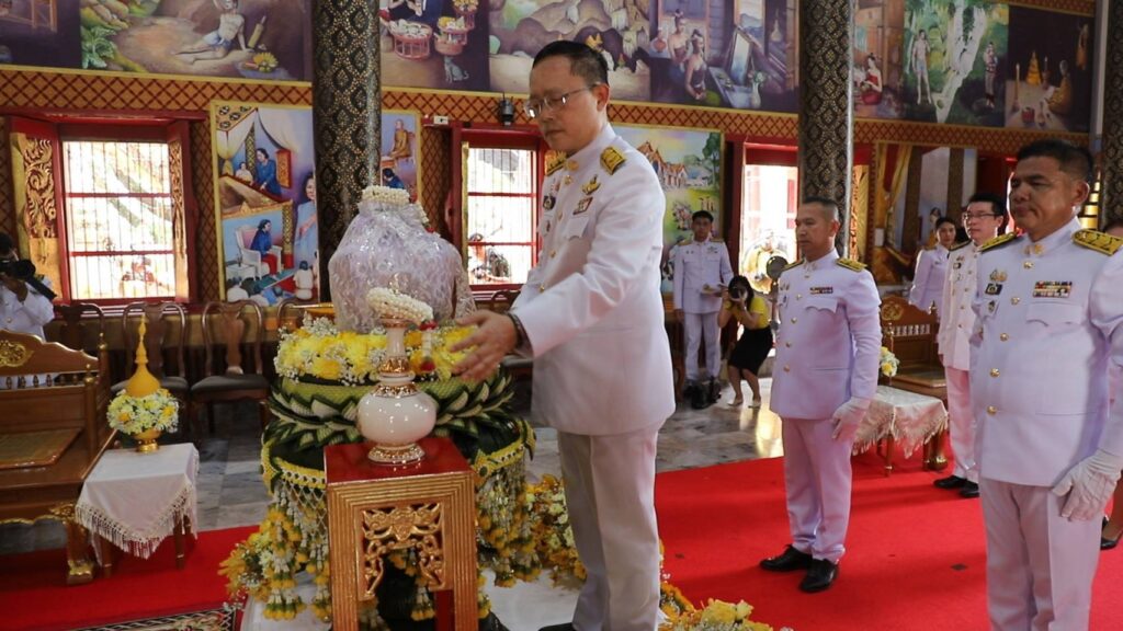 วันที่ 4 กรกฎาคม 2567 เวลา 14.49 น. ที่บริเวณพิธี บ่อน้ำทิพย์ เวียงเจ้าเงาะ ตำบลทุ่งยั้ง อำเภอลับแล จังหวัดอุตรดิตถ์ นายศิริวัฒน์ บุปผาเจริญ ผู้ว่าราชการจังหวัดอุตรดิตถ์ พร้อมหัวหน้าส่วนราชการ ข้าราชการทุกภาคส่วน และประชาชนชาวจังหวัดอุตรดิตถ์ พร้อมใจกันมาร่วมพิธีพลีกรรมตักน้ำศักดิ์สิทธิ์ ณ บ่อน้ำทิพย์ เวียงเจ้าเงาะ ตำบลทุ่งยั้ง อำเภอลับแล จังหวัดอุตรดิตถ์ บรรยากาศในพิธีเป็นไปอย่างสมพระเกียรติ ตั้งแต่การจัดอุปกรณ์ประกอบพิธีบวงสรวงอย่างประณีตงดงาม และขบวนคณะพิธีที่สง่างามเป็นระเบียบเรียบร้อยถูกต้องตามโบราณราชประเพณี โดยมีพิธีพลีกรรมตักน้ำศักดิ์ศักดิ์สิทธิ์ และอัญเชิญโดยริ้วขบวนสมพระเกียรติสู่วิหารหลวง วัดพระแท่นศิลาอาสน์ พระอารามหลวง ระยะทางประมาณ 1 กิโลเมตร บ่อน้ำทิพย์แห่งนี้ เป็นบ่อน้ำศักดิ์สิทธิ์คู่บ้านคู่เมืองของจังหวัดอุตรดิตถ์ ที่เป็นสถานที่แห่งเดียวที่จังหวัดอุตรดิตถ์ ใช้น้ำจากบ่อน้ำแห่งนี้ไปร่วมประกอบพิธีกรรม มีความเชื่อว่าเป็นบ่อน้ำศักดิ์สิทธิ์ที่สามารถนำน้ำไปใช้รักษาโรคได้ และมีลักษณะพิเศษต่างจากแหล่งอื่นๆคือน้ำในบ่อแห่งนี้จะไหลตลอดทั้งปีไม่มีการแห้งขอด มีการถ่ายเทและทำความสะอาดในตัวบ่อเอง โดยบ่อน้ำ น้ำทิพย์ ตั้งอยู่บริเวณด้านทิศใต้ ภายในร่องคูชั้นที่ 2 ของคูเมืองเวียงเจ้าเงาะ ( ตั้งอยู่ที่ตำบลทุ่งยั้ง อำเภอลับแล จังหวัดอุตรดิตถ์ ) มีลักษณะเป็นบ่อศิลาแลงธรรมชาติ โดยมีการนำก้อนศิลาแลงทรงสี่เหลี่ยมผืนผ้ามาก่อเป็นขอบบ่อ ขอบปากบ่อปัจจุบันเป็นทรงสี่เหลี่ยมผืนผ้ากว้าง 87 เซนติเมตร ยาว 1.20 เมตร และเมื่อลึกลงไปมีลักษณะเป็นทรงสี่เหลี่ยมจัตุรัส ขนาด 87 เซนติเมตร ปัจจุบันวัดความลึกได้ 4.07 เมตร ภายในมีน้ำอยู่ ซึ่งยังมีชาวบ้านนำน้ำไปใช้ เนื่องจากเชื่อว่าเป็นบ่อน้ำศักดิ์สิทธิ์ บริเวณผนังทิศเหนือ (คันกลางคู) ในระดับความลึกที่ 80 เซนติเมตร มีลักษณะเป็นโพรงเข้าไปภายในชั้นศิลาแลง และเป็นโบราณสถานสำคัญแห่งหนึ่งของจังหวัดอุตรดิตถ์ ซึ่งจะมีการนำน้ำในบ่อแห่งนี้ไปใช้ประกอบในพิธีเสกน้ำพระพุทธมนต์ศักดิ์สิทธิ์ ที่จะมีขึ้นในวันอาทิตย์ที่ 7 กรกฎาคมนี้ ที่วิหารหลวง วัดพระแท่นศิลาอาสน์ พระอารามหลวง