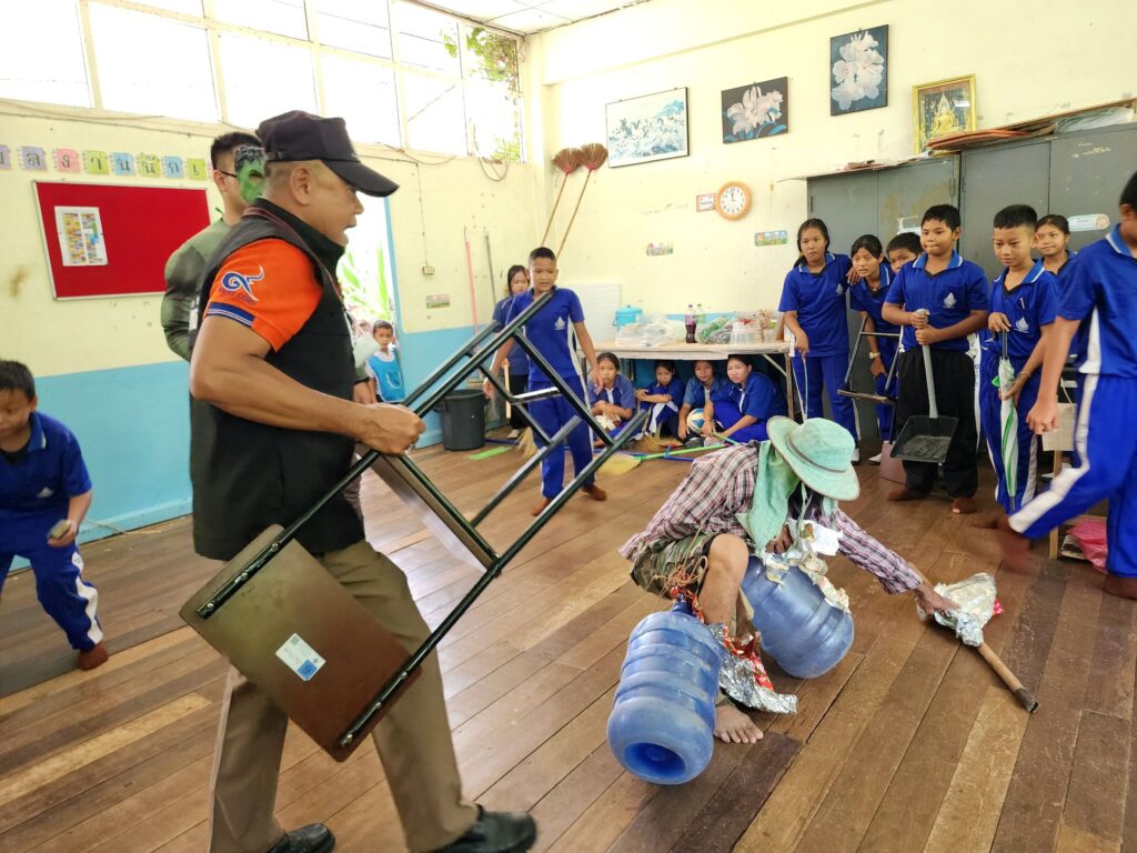 2) หนี-ซ่อน-สู้ | Run-Hide-Fight ให้ความรู้และวิธีการเอาตัวรอดจากเหตุการณ์ความไม่สงบในโรงเรียน และการปฏิบัติตัว เมื่อเกิดเหตุวิกฤติและรับมือสถานการณ์ฉุกเฉินในสถานศึกษา ณ หอประชุมโรงเรียนบ้านแก่งสฤษดิ์เสนาอุปถัมภ์