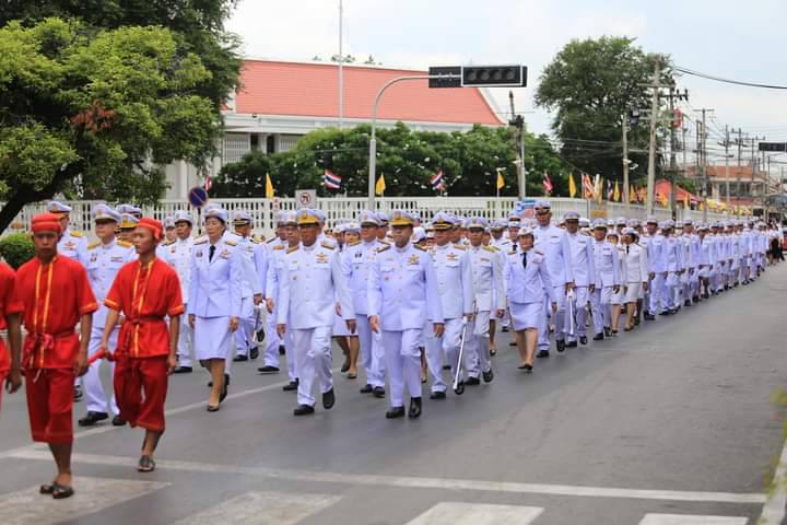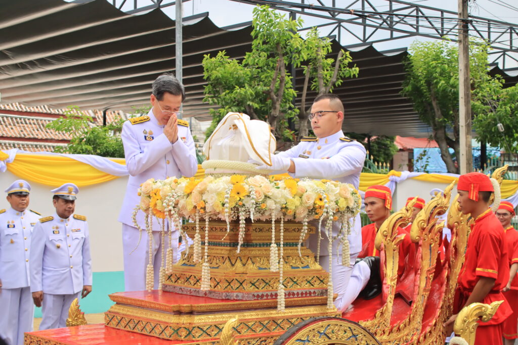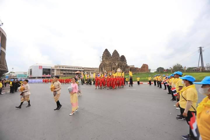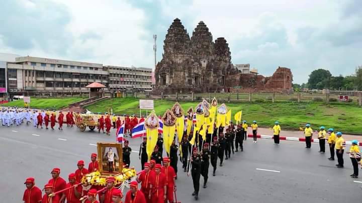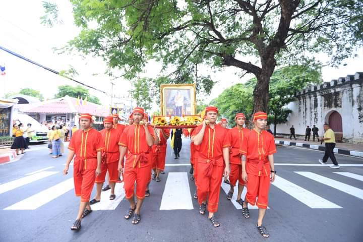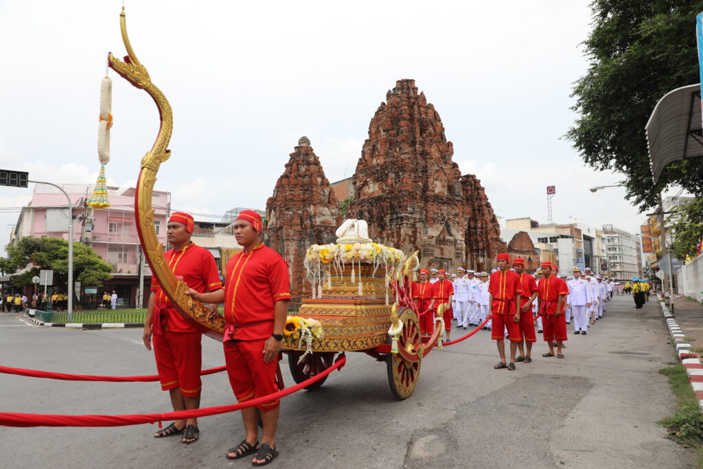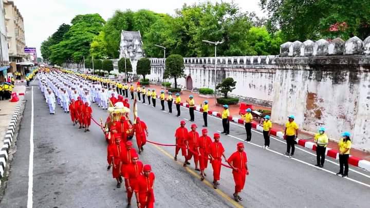 จากนั้นเวลา 14.49 นาที ได้เคลื่อนขบวนอัญเชิญน้ำพระพุทธมนต์ศักดิ์สิทธิ์ ริ้วขบวน ประกอบด้วย ราชรถอันเชิญน้ำพระพุทธมนต์ศักดิ์สิทธิ์ ขบวนอัญเชิญพระบรมฉายาลักษณ์ ขบวนธงชาติและธงตราสัญลักษณ์ขบวนข้าราชการ นักเรียน นักศึกษา กลุ่มชาติพันธุ์ จิตอาสา และประชาชนทั่วไปจำนวนกว่า 1,000 คน โดยออกจากหน้าวัดกวิศรารามราชวรวิหาร ไปตามเส้นทางรอบเมืองลพบุรี ผ่านโบราณสถานสำคัญของจังหวัดลพบุรี ได้แก่ พระนารายณ์ราชนิเวศน์ พระปรางค์สามยอด ศาลพระกาฬ เพื่อความเป็นสิริมงคลของประชาชน และวนกลับมายังวัดกวิศรารามราชวรวิหาร เพื่ออัญเชิญน้ำพระพุทธมนต์ศักดิ์สิทธิ์ประจำในพระอุโบสถ เพื่อเข้าพิธีเสกน้ำพระพุทธมนต์ศักดิ์สิทธิ์ในวันที่ 7 กรกฎาคม 2567 และพิธีเวียนเทียนสมโภชน้ำพระพุทธมนต์ศักดิ์สิทธิ์ ในวันที่ 8 กรกฎาคม 2567 จากนั้นในวันพฤหัสบดีที่ 14 กรกฎาคม 2567 ผู้ว่าราชการจังหวัดลพบุรีจะเชิญคนโทน้ำพระพุทธมนต์ศักดิ์สิทธิ์ของจังหวัดลพบุรี ไปยังกระทรวงมหาดไทย ต่อไป