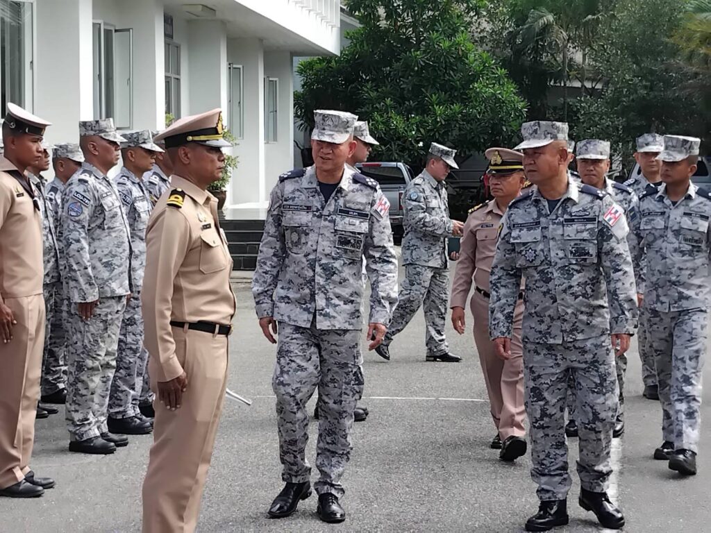 เมื่อวันที่ 6 ก.ค.67 ที่ผ่านมา ศูนย์อำนวยการรักษาผลประโยชน์ของชาติทางทะเล ภาค3 โดยศูนย์อำนวยการรักษาผลประโยชน์ของชาติทางทะเลจังหวัดสตูล นายศักระ กปิลกาญจน์ ผู้อำนวยการศูนย์อำนวยการรักษาผลประโยชน์ของชาติทางทะเลจังหวัดสตูล/ผู้ว่าจังหวัดสตูล มอบหมายให้ นาวาเอกแสนย์ไท บัวเนียม ร.น.รองศูนย์อำนวยการรักษาผลประโยชน์ของชาติทางทะเลจังหวัดสตูล/ ผู้บังคับหน่วยเฉพาะกิจพื้นที่ตอนใต้ ศรชล.ภาค 3 ร่วมให้การต้อนรับ พล.ร.อ.วรวุธ พฤกษารุ่งเรือง เสนาธิการทหารเรือ/เลขาธิการ ศรชล. พร้อมด้วย พล.ร.ท.สุชาติ ธรรมพิทักษ์เวช ผบ.ทรภ.3/ผอ.ศรชล.ภาค 3 และคณะ ในโอกาสเดินทางมาตรวจเยี่ยมหน่วยงานใน ทรภ.3 ที่ตั้งอยู่ในพื้นที่จังหวัดสตูล เพื่อติดตามความก้าวหน้าการดำเนินการตามแผนพัฒนาศักยภาพ ทหารเรือทางฝั่งทะเลอันดามัน โดยมีกำลังพลหน่วยงานใน ทรภ.3 ในพื้นที่จังหวัดสตูล ประกอบด้วย นป.สอ.รฝ.452, สถานีเรือละงู นรภ.ทร.เกาะหลีเป๊ะ, เรือหลวงมันนอก เรือ ต.114 เรือ ต.273 แถวให้การต้อนรับและรับการตรวจเยี่ยม