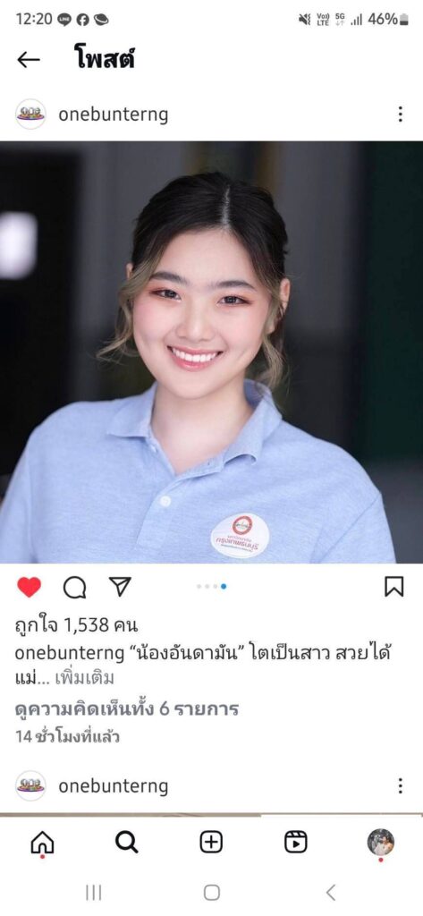 “เวลาผ่านไปไวเหมือนโกหก #น้องอันดามันลูกสาวโตเป็นสาวเข้ามหาวิทยาลัยแล้ว โดยตอนนี้เป็นเฟรชชี่ คณะแพทยศาสตร์ มหาวิทยาลัยกรุงเทพธนบุรี” ซึ่งแม่บุ๋มได้โพสต์ภาพน้องอันดามัน เข้าร่วมประกวดดาวเดือนของมหาวิทยาลัย เมื่อได้เห็นลูกแต่งหน้าแบบจัดเต็ม แม่บุ๋มถึงกับอึ้งในความสวยจี้งของลูกสาว โดยแม่บุ๋มโพสต์ข้อความระบุว่า “ประกวดดาวเดือนมหาวิทยาลัย เป็นครั้งแรกที่เห็นลูกแต่งหน้าทำผมเต็ม ลูกชั้นเป็นสาวแล้วเหรอนี่?? บนเวทีดูเป็นสาวพอรู้ว่าแม่มา (ที่จริงแอบมาดูตั้งแต่เริ่ม) อ้อนเลยจ้า”