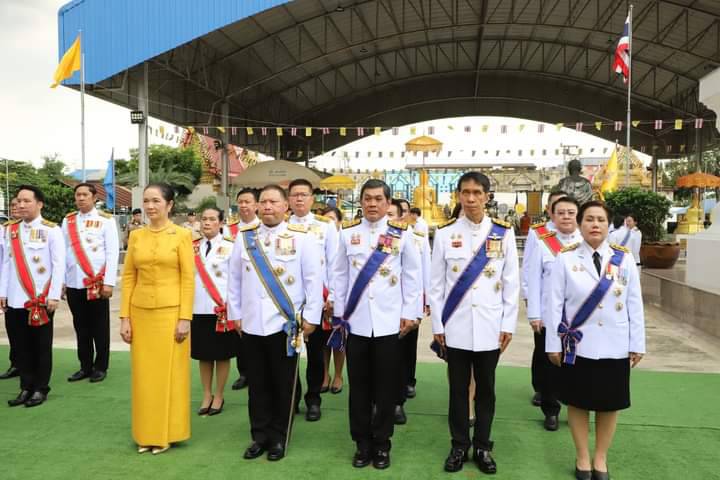 จังหวัดปทุมธานี ประกอบพิธีเสกน้ำพระพุทธมนต์ศักดิ์สิทธิ์ เนื่องในโอกาสพระราชพิธีมหามงคลเฉลิมพระชนมพรรษา 6 รอบ 28 กรกฎาคม 2567 ณ อุโบสถวัดประยูรธรรมาราม วันนี้ เวลา 17.09 น. พสกนิกรจังหวัดปทุมธานีทุกหมู่เหล่า พร้อมใจกันร่วมประกอบพิธีเสกน้ำพระพุทธมนต์ศักดิ์สิทธิ์ เนื่องในโอกาสพระราชพิธีมหามงคลเฉลิมพระชนมพรรษา 6 รอบ 28 กรกฎาคม 2567 ณ อุโบสถวัดประยูรธรรมาราม ตำบลคูคต อำเภอลำลูกกา จังหวัดปทุมธานี โดยมี พระราชสุทธิธรรมาจารย์ เจ้าคณะจังหวัดปทุมธานี เจ้าอาวาสวัดประยูรธรรมาราม เป็นประธานฝ่ายสงฆ์ นายภาสกร บุญญลักษม์ ผู้ว่าราชการจังหวัดปทุมธานี เป็นประธานฝ่ายฆราวาส พร้อมด้วย นายกอบชัย ชูโต ผู้พิพากษาหัวหน้าศาลแขวงขอนแก่น ช่วยทำงานชั่วคราวในตำแหน่งผู้พิพากษาหัวหน้าศาลจังหวัดปทุมธานี นายไชยรัตน์ บุตรแพ ผู้พิพากษาหัวหน้าศาลจังหวัดธัญบุรี นายธวัชชัย ผ่องใส อัยการจังหวัดปทุมธานี พล.ต.ต.ยุทธนา จอนขุน ผู้บังคับการตำรวจภูธรจังหวัดปทุมธานี นางบุษบา บุญญลักษม์ นายกเหล่ากาชาดจังหวัดปทุมธานี รองผู้ว่าราชการจังหวัดปทุมธานี หัวหน้าส่วนราชการ นายอำเภอ ข้าราชการทุกหมู่เหล่า องค์กรปกครองส่วนท้องถิ่น และประชาชน เข้าร่วมพิธี โดยเมื่อผู้ว่าราชการจังหวัดปทุมธานี เดินทางมาถึงหน้าพระอุโบสถวัดประยูรธรรมาราม ได้เปิดกรวยกระทงดอกไม้ธูปเทียนแพ และถวายความเคารพเบื้องหน้าพระบรมฉายาลักษณ์พระบาทสมเด็จพระเจ้าอยู่หัว จุดธูปเทียนหน้าเครื่องสังเวยบูชาฤกษ์ พราหมณ์อ่านโองการบูชาฤกษ์ จากนั้นเข้าประกอบพิธีในพระอุโบสถ โดยเมื่อจุดธูปเทียนบูชาพระรัตนตรัยแล้ว ประธานสงฆ์ให้ศีล ประกาศชุมนุมเทวดา และเจิมเทียนชัย เทียนมหามงคล และเทียนพุทธาภิเษก เมื่อถึงฤกษ์เวลา 17.09 น. ผู้ว่าราชการจังหวัดปทุมธานี ถวายเทียนชนวนแด่ประธานสงฆ์ เมื่อประธานสงฆ์จุดเทียนชัยและเทียนพุทธาภิเษก พระสงฆ์ทรงสมณศักดิ์ 10 รูป เจริญพระพุทธมนต์คาถาจุดเทียนชัย เจ้าหน้าที่ประโคมฆ้องชัย ดุริยางค์บรรเลงเพลงมหาฤกษ์ ระหว่างพระสงฆ์ทรงสมณศักดิ์ 10 รูป เจริญพระพุทธมนต์ ผู้ว่าราชการจังหวัดปทุมธานี จุดเทียนมหามงคล เทียนทำน้ำมนต์ และเทียนนวหรคุณ เมื่อเจริญพระพุทธมนต์จบ ได้น้อมส่งพระสงฆ์ทรงสมณศักดิ์ และนิมนต์พระสงฆ์เถราจารย์ 5 รูป ขึ้นนั่งอธิษฐานจิต และนิมนต์พระสงฆ์ 4 รูปสวดภาณวารจนถึงเวลาอันสมควร จนเสร็จพิธีเสกน้ำพระพุทธมนต์ศักดิ์สิทธิ์ เมื่อลงจากพระอุโบสถ ผู้ว่าราชการจังหวัดปทุมธานีและผู้เข้าร่วมพิธี ถวายความเคารพเบื้องหน้าพระบรมฉายาลักษณ์พระบาทสมเด็จพระเจ้าอย
