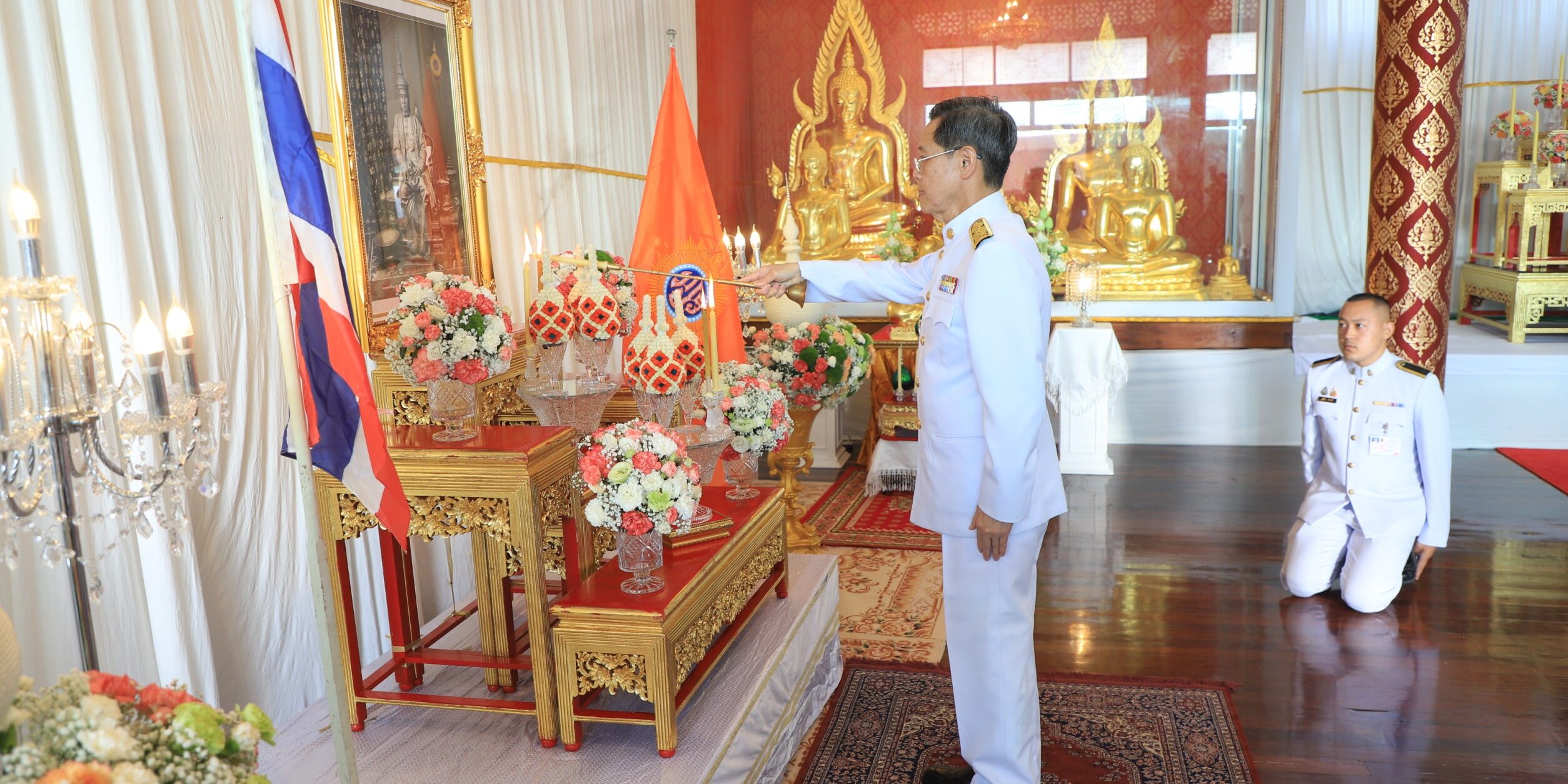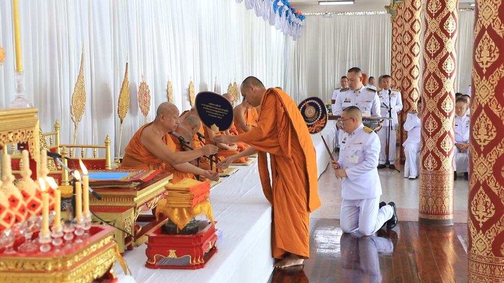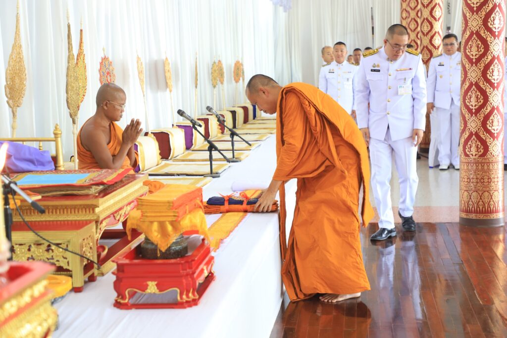 โดยประธานในพิธี จุดธูปเทียนบูชาพระรัตนตรัย จุดธูปเทียนเครื่องทองน้อย ชุดล่าง ถวายราชสักการะเบื้องหน้าพระบรมฉายาลักษณ์พระบาทสมเด็จพระจอมเกล้าเจ้าอยู่หัว พระสยามเทวมหามกุฏวิทยมหาราช รัชกาลที่ 4 จากนั้นประธานในพิธีจุดเครื่องทองน้อย ชุดบน สักการะเบื้องหน้าพระบรมฉายาลักษณ์พระบาทสมเด็จพระจอมเกล้าเจ้าอยู่หัว พระสยามเทวมหามกุฏวิทยมหาราช รัชกาลที่ 4 จุดเทียนส่องธรรม จุดเครื่องทองน้อยหน้าพระประธานบูชาธรรม เจ้าหน้าที่อาราธนาศีล พระสงฆ์ถวายศีล เจ้าหน้าที่อาราธนาธรรม พระสงฆ์ถวายพระธรรมเทศนา พระสงฆ์อนุโมทนาบนธรรมาสน์ ซึ่งในเวลาต่อมาประธานในพิธีถวายเครื่องกัณฑ์เทศน์ เจ้าหน้าที่ลาดพระภูษาโยง และรองโยง ประธานในพิธี ทอดผ้าไตรจำนวน 1 ไตร เจ้าหน้าที่เชื่อมพระภูษาโยง พระสงฆ์สดับปกรณ์และถวายอดิเรก พระสงฆ์ 10 รูป ขึ้นนั่งประจำอาสน์สงฆ์ เจ้าหน้าที่อาราธนาพระปริตร พระสงฆ์เจริญพระพุทธมนต์ จากนั้น ประธานฝ่ายฆราวาสพร้อมทั้งแขกผู้มีเกียรติ ถวายเครื่องไทยธรรมแก่พระสงฆ์ จำนวน 10 รูป เจ้าหน้าที่ลาดพระภูษาโยง และรองโยง ประธานในพิธีทอดผ้าไตร 10 ไตร พระสงฆ์อนุโมทนา ถวายอดิเรกเป็นอันเสร็จพิธี