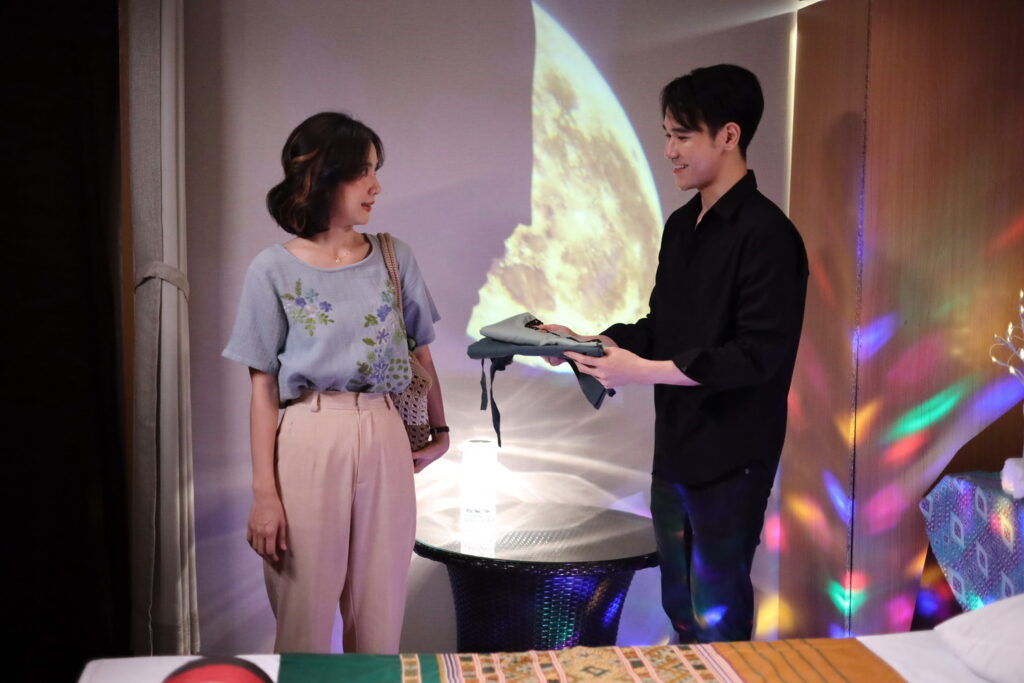 และนี่ก็เป็นฉากเบื้องหลังที่นำมาฝากกัน โดยฉากนี้ทีมงานใช้ ห้องพักศูนย์บ้านพักคนชรา แถวลำลูกกาคลอง 5 เป็นสถานที่ถ่ายทำ ซึ่งเซ็ทเป็นห้องนวดพิเศษขึ้นมา ก่อนถ่ายทำ ฝุ่น (จีรภา ระวังการณ์) ผู้กำกับ ก็เรียก เนสท์ คิมม่อน และนักแสดงรับเชิญ บอนไซ (ปณชัย ศิรินิยมผล) รับบท “หนุ่ม” นักนวดเบอร์ตอง มาซักซ้อมกันก่อน ไปพร้อมกับกล้อง โดย เนสท์ ก็มีการทบทวนเรื่องการนวดแบบกษัยไปด้วย