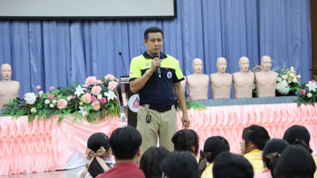 เมื่อวันที่ 12 กรกฎาคม 2567 เวลา 09.00 น. ร้อยตำรวจเอก ดร.ตรีลุพธ์ ธูปกระจ่าง นายกเทศมนตรีนครรังสิต มอบหมายนายวรรณชัย อิทธิมณีสิริ รองนายกเทศมนตรีนครรังสิต ให้เกียรติเป็นประธานในพิธีเปิดการอบรม ” โครงการอบรม 1 ครอบครัว ๑ CPR การปฐมพยาบาลเบื้องต้นและการช่วยชีวิตฉุกเฉิน ” ณ หอประชุมโรงเรียนธัญบุรี โดยมีนายเพิ่มพงษ์ พุ่มวิเศษ ผู้อำนวยการกองสาธารณสุขและสิ่งแวดล้อม เทศบาลนครรังสิตเป็นผู้กล่าวรายงานวัตถุประสงค์การจัดโครงการฯ ทั้งนี้นายอธิปย์ อู่แก้ว ผู้อำนวยการโรงเรียนธัญบุรี พร้อมคณะผู้บริหาร คณาจารย์โรงเรียนธัญบุรี ที่ปรึกษากิตติมศักดิ์นายกเทศมนตรีฯ หัวหน้าส่วนราชการเทศบาลนครรังสิต ให้เกียรติร่วมในพิธีเปิดฯ