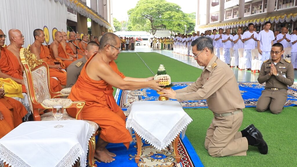 โดยประธานในพิธีประกอบพิธี จุดธูปเทียนบูชาพระรัตนตรัย ถวายดอกไม้ธูปเทียนแพ เบื้องหน้าพระรูปสมเด็จพระอริยวงศาคตญาณ สมเด็จพระสังฆราช สกลมหาสังฆปริณายก เปิดกรวยกระทงดอกไม้ธูปเทียนแพ เบื้องหน้าพระบรมฉายาลักษณ์พระบาทสมเด็จพระเจ้าอยู่หัว และถวายเครื่องสักการะแด่ พระเทพเสนาบดี เจ้าคณะจังหวัดลพบุรี เจ้าอาวาสวัดกวิศรารามราชวรวิหาร เสร็จแล้วประกอบพิธีปลงผมนาคจำนวน 114 นาค