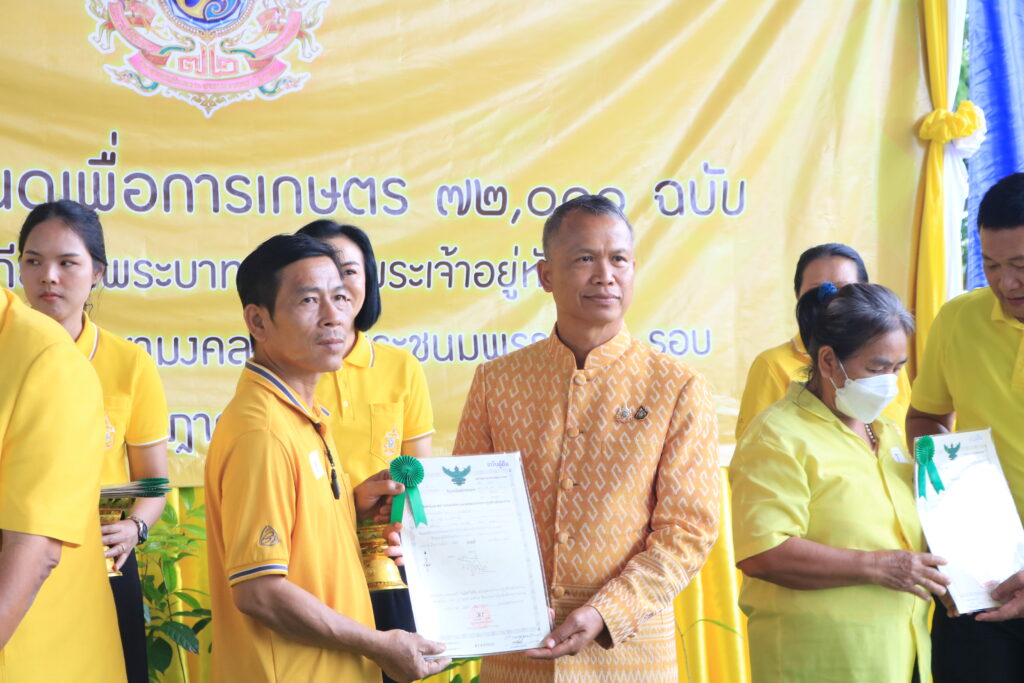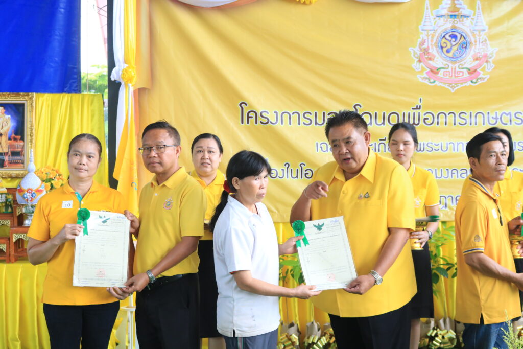 นายธเนตร พารา ปฏิรูปที่ดินจังหวัดสกลนคร กล่าวว่า การมอบโฉนดเพื่อการเกษตรในครั้งนี้ สำนักงานการปฏิรูปที่ดินเพื่อเกษตรกรรม (ส.ป.ก.) ได้จัดทำโครงการมอบโฉนดเพื่อการเกษตรทั่วประเทศ 72,000 ฉบับ เฉลิมพระเกียรติพระบาทสมเด็จพระเจ้าอยู่หัว เนื่องในโอกาสพระราชพิธีมหามงคลเฉลิมพระชนมพรรษา 6 รอบ 28 กรกฎาคม 2567 กำหนดให้ ส.ป.ก.แต่ละจังหวัดเป็นผู้ดำเนินการเพื่อเป็นการแสดงความจงรักภักดี และสำนึกในพระมหากรุณาธิคุณเป็นล้นพ้นอันหาที่สุดมิได้ และเพื่อเทิดทูนสถาบันพระมหากษัตริย์ พร้อมกันนี้ยังเปิดโอกาสให้เกษตรกรได้มีส่วนร่วมในการดำเนินกิจกรรม อันเป็นการสร้างความสามัคคีและขวัญกำลังใจให้เกษตรกรในการดำรงไว้ซึ่งแผ่นดินเกษตรกรรม