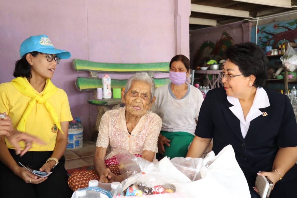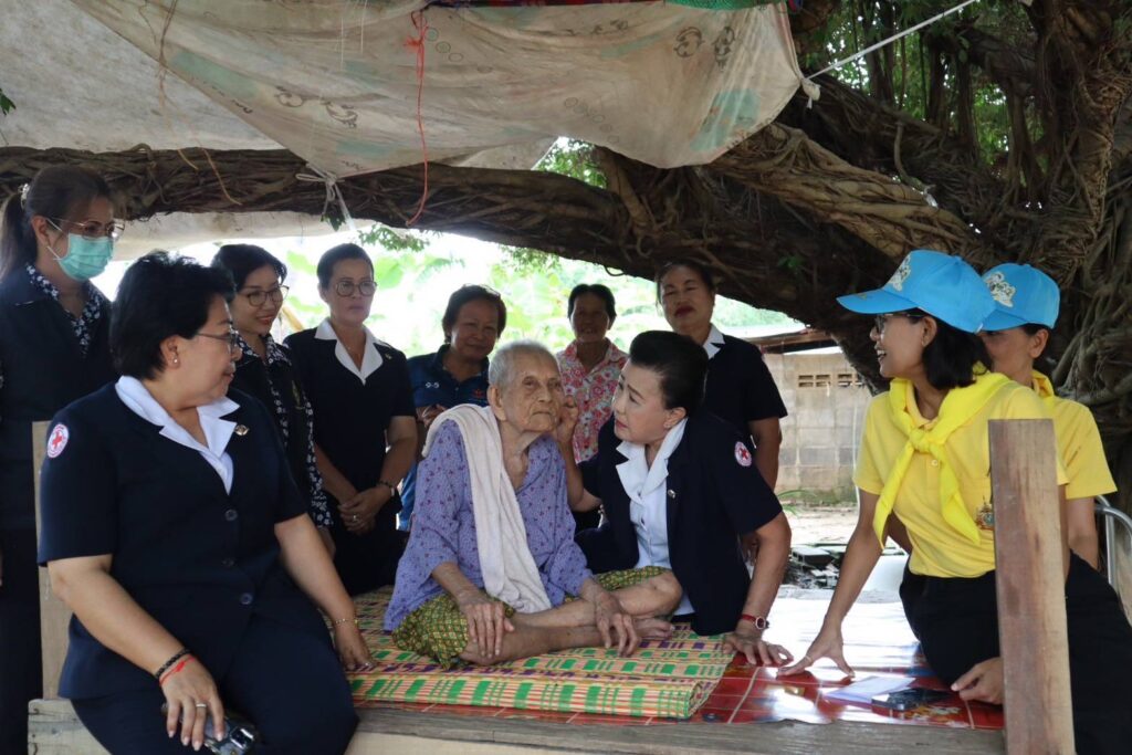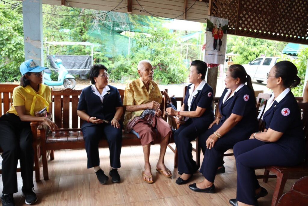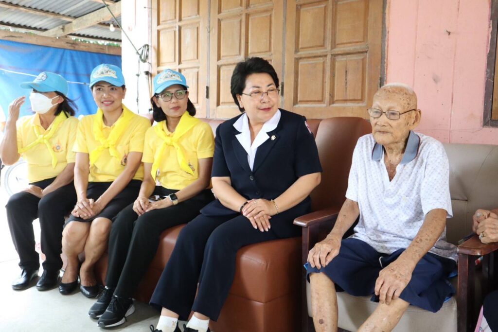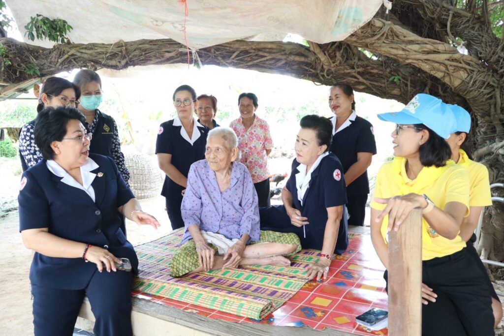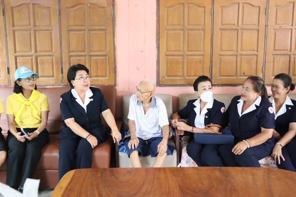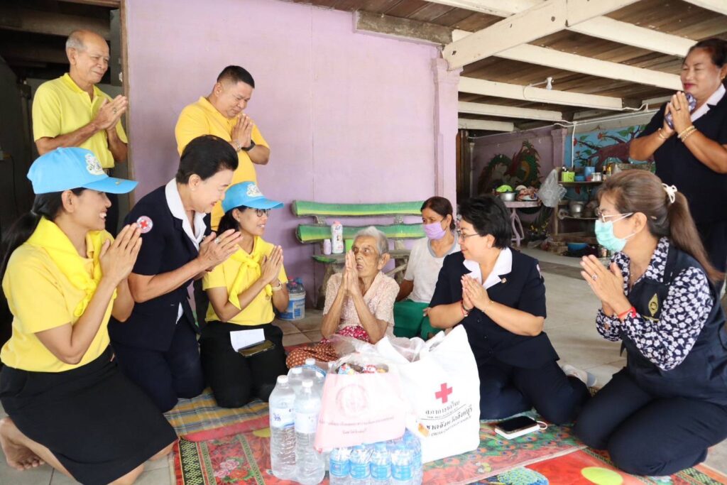สิงห์บุรี-วันที่ 15 กรกฎาคม 2567 เวลา 13.30 น. นางวาสนา ธีรนิติ นายกเหล่ากาชาดจังหวัดสิงห์บุรี พร้อมด้วย กรรมการเหล่ากาชาดจังหวัดสิงห์บุรี สมาชิกชมรมแม่บ้านมหาดไทยจังหวัดสิงห์บุรี หัวหน้าส่วนราชการ ปลัดอำเภอ ผู้บริหารท้องถิ่นและคณะ กำนัน ผู้ใหญ่บ้าน และเจ้าหน้าที่เหล่ากาชาดจังหวัดสิงห์บุรี ร่วมลงพื้นที่ออกเยี่ยมให้กำลังใจผู้สูงอายุ 100 ปีขึ้นไป เพื่อเฉลิมพระเกียรติพระบาทสมเด็จพระเจ้าอยู่หัวเนื่องในโอกาสมหามงคลเฉลิมพระชนมพรรษา 6 รอบ 28 กรกฎาคม 2567 จำนวน 5 ราย ในพื้นที่อำเภออินทร์บุรี จังหวัดสิงห์บุรี ดังนี้