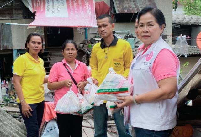 พัฒนาสังคมและความมั่นคงของมนุษย์จังหวัดปทุมธานี และ ดร.ยุวดี บำรุงบุตร ประธานอาสาสมัครพัฒนาสังคมและความมั่นคงของมนุษย์ จังหวัดปทุมธานี พร้อมด้วยอาสาสมัครพัฒนาสังคมและความมั่นคงของ มนุษย์จังหวัดปทมธานีอำเภอ ทั้ง7อำเภอ อำเภอละ 200 ชุด รวมทั้งสิ้น