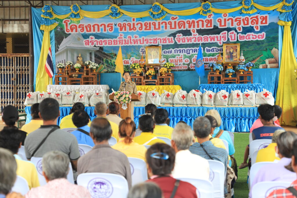 วันที่ 17 กรกฎาคม 2567 เวลา 09.00 น. ที่ วัดดงดินแดง หมู่ที่ 1 ตำบลดงดินแดง อำเภอหนองม่วง จังหวัดลพบุรี นายอำพล อังคภากรณ์กุล ผู้ว่าราชการจังหวัดลพบุรี พร้อมด้วย นางสุวจี ศิริปัญโญ นายกเหล่ากาชาดจังหวัดลพบุรี คณะกรรมการเหล่ากาชาดจังหวัดลพบุรี ส่วนราชการประจำจังหวัดลพบุรี ออกหน่วยบำบัดทุกข์ บำรุงสุข สร้างรอยยิ้มให้ประชาชน ประจำปีงบประมาณ 2567 ทั้งนี้เพื่อบริการประชาชน รับฟังปัญหา ความเดือดร้อนและความต้องการของประชาชน เพื่อที่จะได้ดำเนินการแก้ไขปัญหา ได้อย่างรวดเร็ว และตรงตามความต้องการอย่างแท้จริง นำความสุขรอยยิ้มมามอบให้กับพี่น้องประชาชน