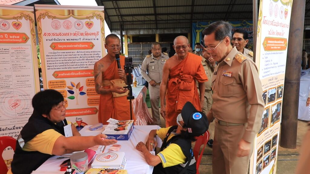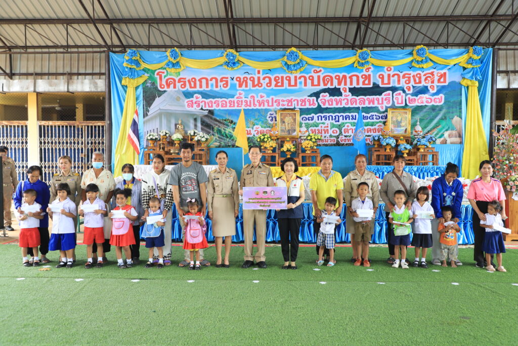 ทั้งนี้ ผู้ว่าราชการจังหวัดลพบุรี และหัวหน้าส่วนราชการ ได้ร่วมกันมอบเงินกองทุนพัฒนาเด็กชนบทในพระราชูปถัมป์สมเด็จพระเทพรัตนราชสุดาฯ สยามบรมราชกุมารีในการอุปการะเด็กชนบท การมอบเงินสงเคราะห์ (พมจ.) ถุงยังชีพแก่ผู้ประสบปัญหาทางสังคม (กาชาด) จากนั้นได้เยี่ยมชมกิจกรรมการให้บริการประชาชนของส่วนราชการต่าง ๆ ที่ให้บริการประชาชน ซึ่งโครงการบำบัดทุกข์ บำรุงสุข สร้างรอยยิ้มให้ประชาชนจังหวัดลพบุรีจะหมุนเวียนไปตามอำเภอต่าง ๆ เพื่อให้ประชาชนในพื้นที่อำเภอห่างไกลได้มีโอกาสได้รับบริการจากหน่วยงานราชการอย่างเท่าเทียมกัน