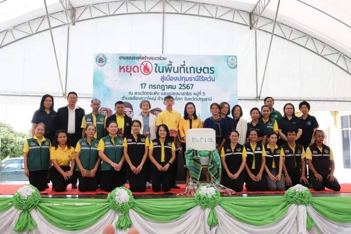 ทั้งนี้ โครงการดังกล่าว เป็นการดำเนินงานตามนโยบายของรัฐบาล ในการป้องกันและแก้ไขปัญหาการเผาในพื้นที่การเกษตร และพื้นที่โล่งแจ้ง ที่ส่งผลให้เกิดมลภาวะหมอกควัน ฝุ่นละอองขนาดเล็ก PM2.5 กระทบต่อสุขภาพอนามัยของประชาชน และเศรษฐกิจของประเทศ โดยต้องการให้เกษตรกรตระหนักถึงผลกระทบที่เกิดจากการเผาในพื้นที่การเกษตร สร้างการมีส่วนร่วมของเกษตรกร ในการป้องกันและแก้ไขปัญหา รวมทั้งสร้างเกษตรกรต้นแบบในการทำการเกษตรปลอดการเผา มุ่งสู่การทำการเกษตรที่เป็นมิตรต่อสิ่งแวดล้อม ตามแนวทางที่ผู้ว่าราชการจังหวัดปทุมธานีเน้นย้ำว่า “รักษ์โลก ปลอดเผา ปลอดภัย” …ขอความร่วมมือหยุดเผาในพื้นที่โล่งแจ้ง และพื้นที่การเกษตร เริ่มที่ตัวเรา เพื่ออากาศสะอาด ปราศจากหมอกควัน…