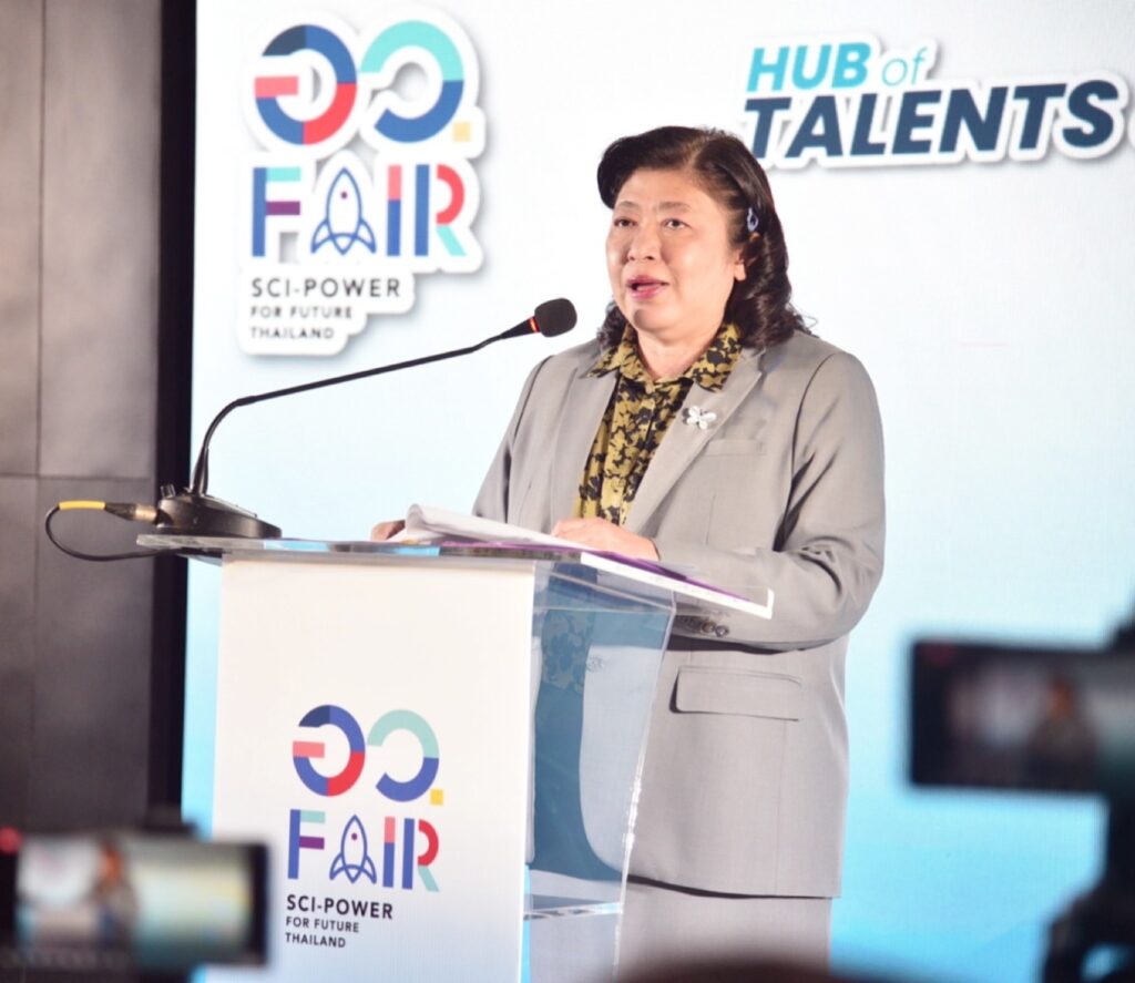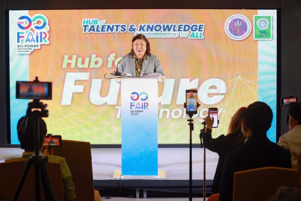 ดร.วิภารัตน์ อ่องดี ผู้อำนวยการสำนักงานการวิจัยแห่งชาติ กล่าวว่า การจัดงาน อว.แฟร์: SCI POWER FOR FUTURE THAILAND เป็นงานมหกรรมส่งเสริมการใช้ประโยชน์จากงานวิจัยและนวัตกรรมเพื่อการพัฒนาเศรษฐกิจไทยอย่างยั่งยืนด้วยพลังสหวิทยาการ จัดโดยกระทรวงการอุดมศึกษา วิทยาศาสตร์ วิจัยและนวัตกรรม (อว.) จากการรวมพลังของหน่วยงานภายใต้ (อว.) พร้อมด้วยเครือข่ายพันธมิตรทั้งภาครัฐและภาคเอกชน และการจัดงาน อว.แฟร์ ครั้งนี้ สำนักงานการวิจัยแห่งชาติ (วช.) ได้นำผลงานวิจัยและนวัตกรรมที่เกิดขึ้นจากศูนย์รวมผู้เชี่ยวชาญ (Hub of Talents) และศูนย์กลางความรู้ (Hub of Knowledge) ซึ่งเป็นการพัฒนาศักยภาพของนักวิจัยรุ่นใหม่ รวมทั้งสร้างเครือข่ายและความร่วมมือระหว่างภาครัฐ ภาคเอกชน และประชาชน เพื่อนำไปสู่การพัฒนาเศรษฐกิจและสังคมของประเทศไทยอย่างยั่งยืน ซึ่งภายในงาน ผู้เข้าชมจะได้พบกับนิทรรศการผลงานวิจัยและนวัตกรรมกว่า 100 ผลงาน จากศูนย์รวมผู้เชี่ยวชาญ (Hub of Talents) และศูนย์กลางความรู้ (Hub of Knowledge) ใน 5 ด้านสำคัญ ภายใต้แนวคิด “Hub of Talents & Knowledge For All” ทั้งนี้ ยังมีการประชุมในประเด็นที่น่าสนใจ อาทิ การอนุรักษ์พันธุกรรมพืชตามแนวพระราชดำริ, Future Thailand: อนาคตที่ยั่งยืน