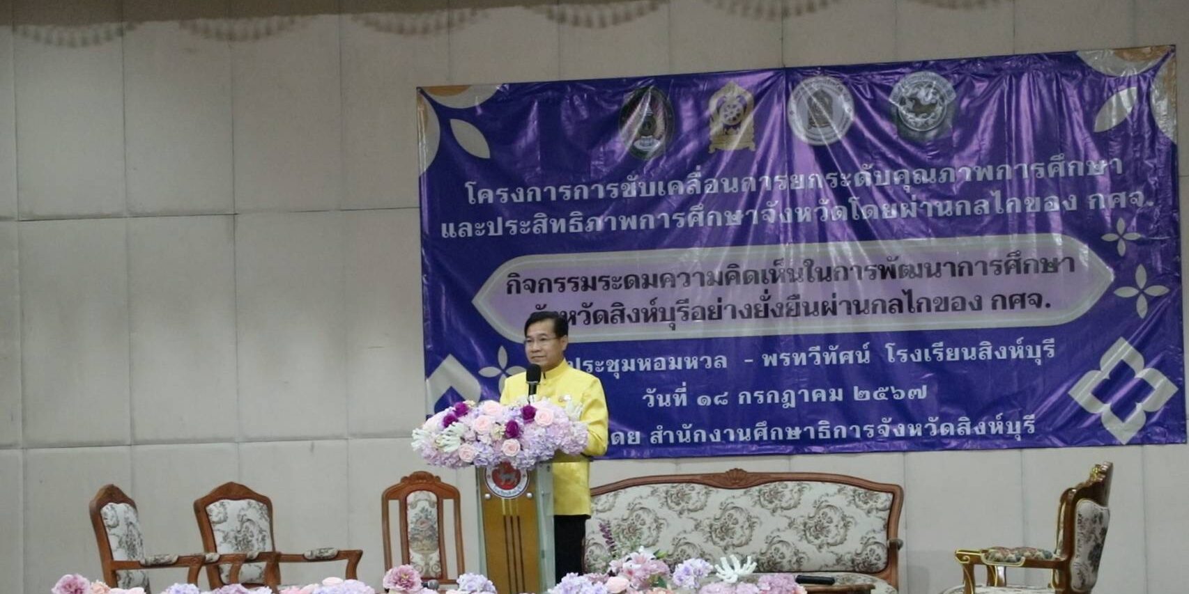 วันที่ 18 กรกฏาคม 2567 นายปรีชา ดิลกพรเมธี รองผู้ว่าราชการจังหวัดสิงห์บุรีเป็นประธานในพิธีเปิดโครงการประชุมขับเคลื่อนการยกระดับคุณภาพศึกษาและประสิทธิภาพการศึกษาจังหวัดโดยผ่านกลไกของ กศจ. โดยมีนางสาวจงกล เรือนงาม นักวิชาการศึกษาชำนาญการพิเศษ รักษาการในตำแหน่งศึกษาธิการจังหวัดสิงห์บุรี นายวิจิตร เลิศไพบูลย์วงศ์ ผู้ทรงคุณวุฒิในคณะกรรมการศึกษาธิการจังหวัดสิงห์บุรี ผู้บริหารหน่วยงานทางศึกษา คณะกรรมการสถานศึกษาขั้นพื้นฐาน และศูนย์ส่งเสริมการเรียนรู้ระดับอำเภอบางระจัน ร่วมเสวนาแนวทางการยกระดับคุณภาพการศึกษาและประสิทธิภาพการศึกษาที่มีคุณภาพตามบริบทของจังหวัดมีการบูรณาการทำงานร่วมกันของหน่วยงานการศึกษา ได้ร่วมกันวิเคราะห์ปัญหาและแลกเปลี่ยนความคิดเห็นในการขับเคลื่อนการจัดการศึกษาของจังหวัดสิงห์บุรีให้เป็นไปตานนโยบายของกระทรวงศึกษาธิการและความต้องการพัฒนาของจังหวัดสิงห์บุรี ในการวางแผนยุทธศาตร์การศึกษาของจังหวัด บูรณาการจัดการศึกษาส่งเสริมสนับสนุนการจัดการศึกษาทุกระดับและทุกประเภทในจังหวัดสิงห์บุรี