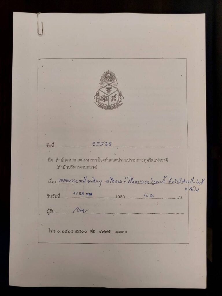 จึงเรียนมาเพื่อโปรดพิจารณาดำเนินการตามอำนาจหน้าที่ตามกฎหมาย ป.ป.ช. หากผลเป็นประการใดโปรดแจ้งให้ข้าพเจ้าทราบด้วย จะขอบคุณยิ่ง