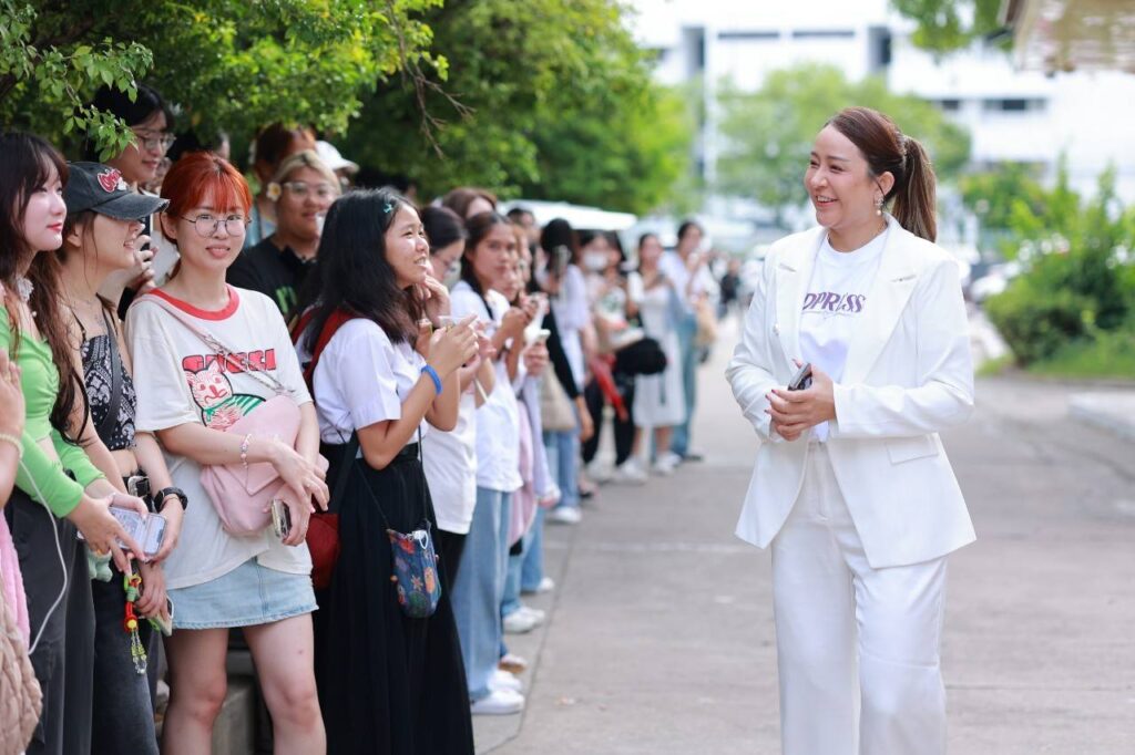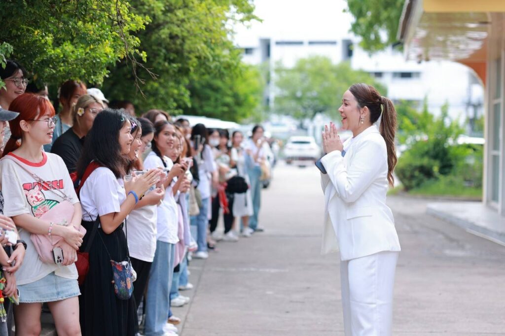 ไม่เพียงแค่นั้น คุณโบว์ ยังให้การต้อนรับเหล่าบรรดาแฟนคลับเป็นอย่างดี กล่าวทักทาย และยกมือไหว้ เป็นภาพที่น่ารักที่สุด รวมทั้ง 3 พ่อแม่ลูกคนบันเทิงอย่าง นีโน่-รัฐบาล Exclusive Producer, เสนาเพชร-พุฒิพงศ์ พรหมสาขา ณ สกลนคร ผู้กำกับฯ และ แตน-ราตรี วิทวัส หนึ่งในนักแสดงของหนังเรื่องนี้ ยังเอาใจแฟนคลับด้วยการเสิร์ฟน้ำเย็นๆ ให้เหล่าแฟนคลับที่มายืนรอกันตั้งแต่เช้าดื่มแก้กระหายกันด้วย แบบเนี้ย…แฟนคลับรักตายเลยยยย…..!!!!