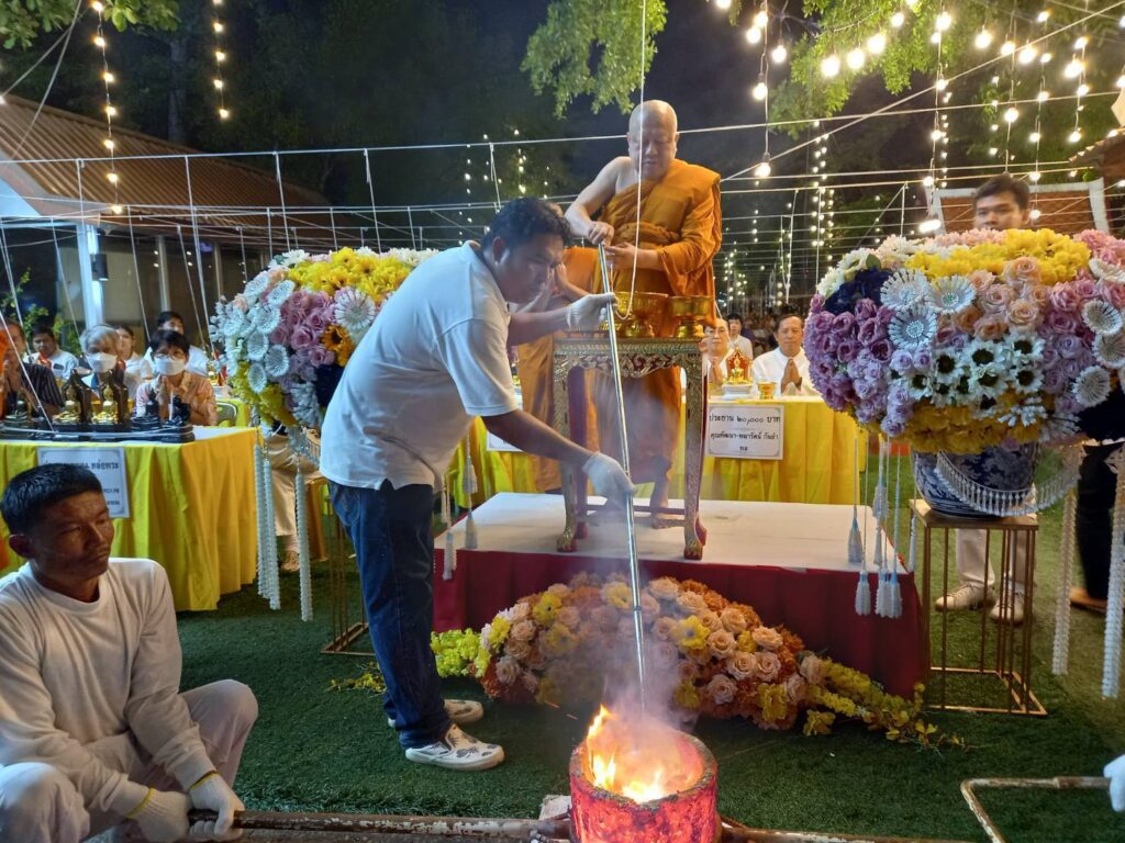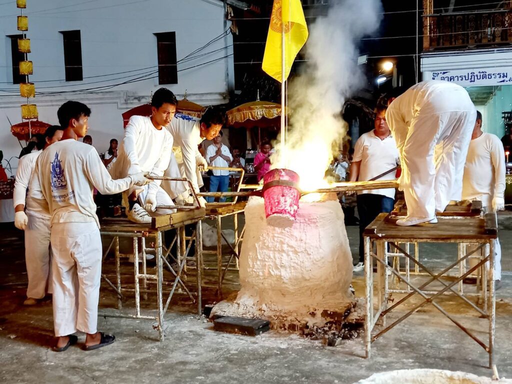มีพระสงฆ์ส่งสมณศักดิ์เจริญพระพุทธมนต์ พร้อมด้วยพระเกจินั่ง ปรกอธิษฐานจิต มีคุณจันทร์แรม-หิรัญ นันทตะเวช และคณะญาติธรรม กรุงเทพฯ เป็นประธานเททองหล่อพระ พร้อมเจ้าภาพเททอง