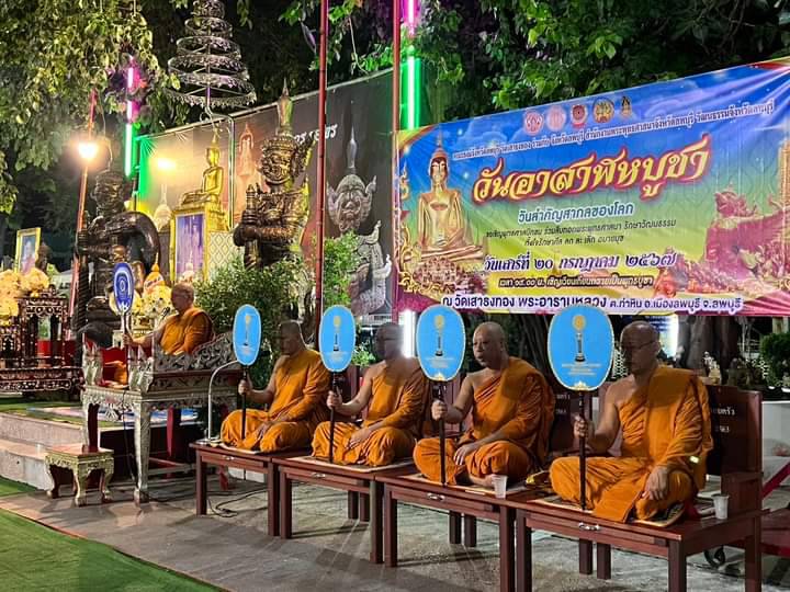 วันที่ 20 กรกฎาคม 2567 เวลา 19.00 น. ที่วัดเสาธงทอง พระอารามหลวง อำเภอเมืองลพบุรี จังหวัดลพบุรี พระครูสิริจริยาภรณ์ เจ้าคณะอำเภอเมืองลพบุรี เจ้าอาวาส วัดเสาธงทอง เป็นประธานฝ่ายสงฆ์ ว่าที่ร้อยตรี ทรงพล แป้วแก้ว รองผู้ว่าราชการจังหวัดลพบุรี เป็นประธานฝ่ายฆราวาส ประกอบพิธีเวียนเทียน เนื่องในวันอาสาฬหบูชาและวันเข้าพรรษา ประจำปี 2567 โดยมี หัวหน้าส่วนราชการ พุทธศาสนิกชน ร่วมฟังพระธรรมเทศนา โดยประธานฯ ได้นำพุทธศาสนิกชนกล่าวแสดงตนเป็นพุทธมามกะ ปฏิบัติธรรม สวดมนต์เจริญจิตตภาวนา และร่วมเวียนเทียนประทักษิณ เพื่อความเป็นสิริมงคลให้แก่ตนเองและครอบครัว เป็นการส่งเสริมให้พุทธศาสนิกชนได้ปฏิบัติศาสนกิจร่วมกันในวันสำคัญทางพระพุทธศาสนา และเป็นแบบอย่างแก่พุทธศาสนิกชนนำไปประพฤติปฏิบัติเพื่อถวายเป็นพุทธบูชา