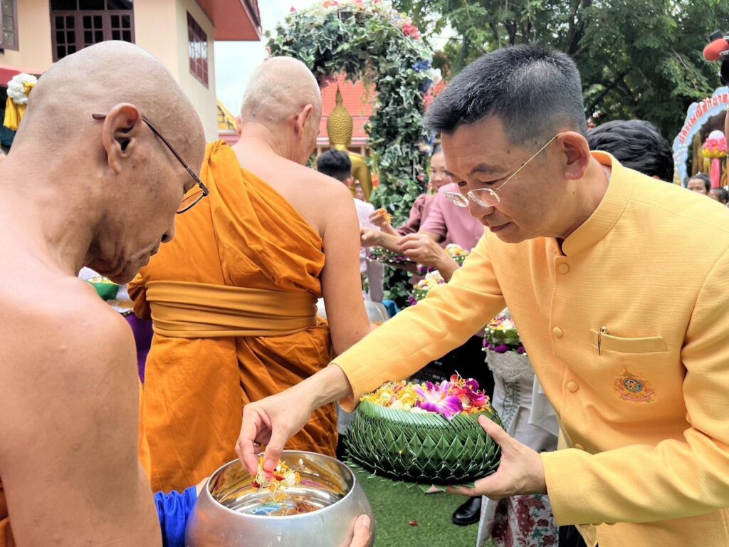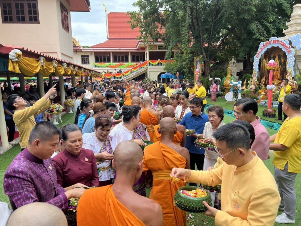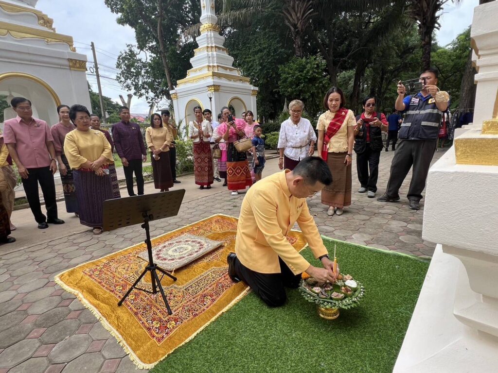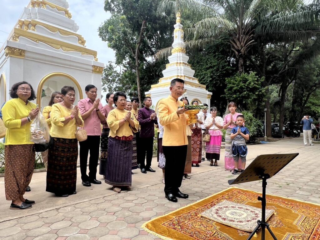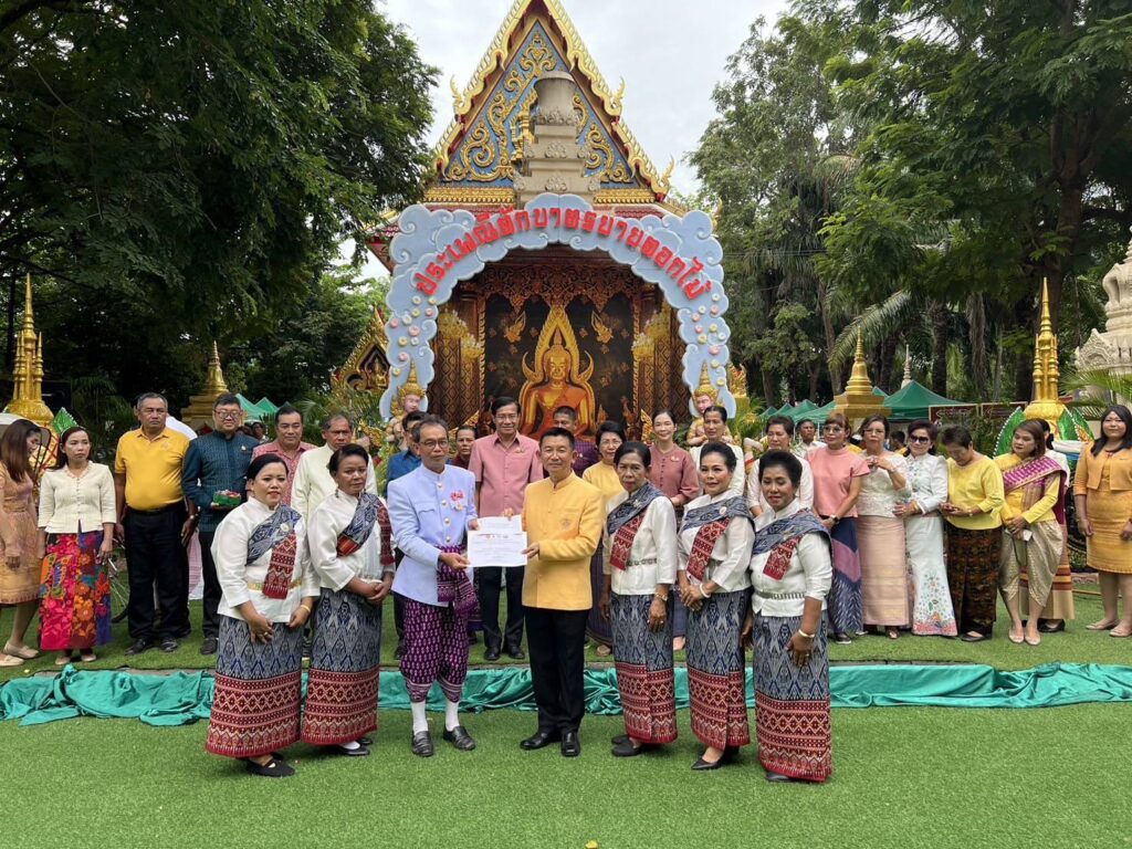 วันที่ 21 กรกฎาคม 2567 เวลา 13.00 น. นายสุเมธ ธีรนิติ ผู้ว่าราชการจังหวัดสิงห์บุรีเป็นประธานในกิจกรรมสืบสานประเพณีแห่เทียนจำนำพรรษายายดอกไม้ (ตักบาตรดอกไม้) ชาวลาวเวียง ในเทศกาลเข้าพรรษา โดยมี นายปรีชา ดิลกพรเมธี รองผู้ว่าราชการจังหวัดสิงห์บุรี นางวาสนา ธีรนิติ นายกเหล่ากาชาดจังหวัดสิงห์บุรี นางวันวิสาข์ ดิลกพรเมธี รองนายกเหล่ากาชาดจังหวัดสิงห์บุรี นายอำเภอ หัวหน้าส่วนราชการ ผู้ช่วยนายกเหล่ากาชาดจังหวัดสิงห์บุรี กรรมการเหล่ากาชาดจังหวัดสิงห์บุรี สมาชิกชมรมแม่บ้านมหาดไทย ข้าราชการ เจ้าหน้าที่เหล่ากาชาดจังหวัดสิงห์บุรี และประชาชน เข้าร่วมพิธีดังกล่าว ณ วัดจินดามณี ตำบลบ้านแป้ง อำเภอพรหมบุรี จังหวัดสิงห์บุรี
