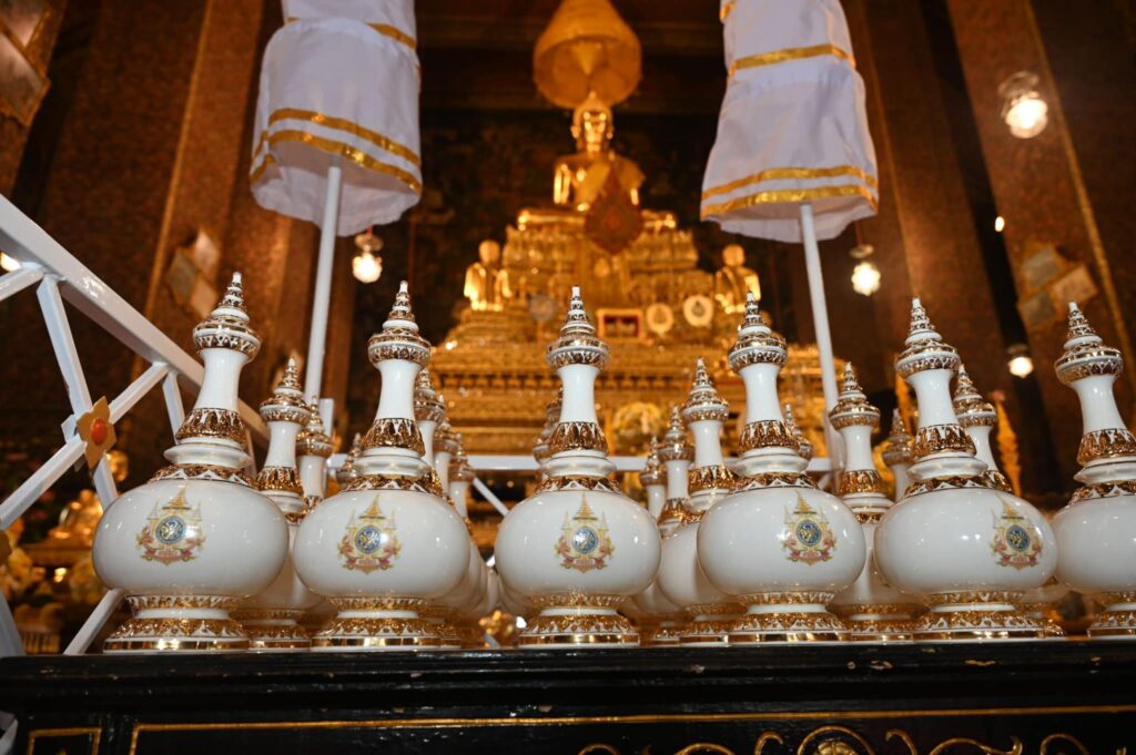 โดยเมื่อขบวนฯ เคลื่อนถึง ผู้ว่าราชการจังหวัดทุกจังหวัด และผู้ว่าราชการกรุงเทพมหานคร เชิญคนโทน้ำพระพุทธมนต์ศักดิ์สิทธิ์ไปวางที่โต๊ะเคียงในพระอุโบสถ วัดพระเชตุพนวิมลมังคลาราม ราชวรมหาวิหาร เพื่อเตรียมประกอบพิธีเสกน้ำพระพุทธมนต์ศักดิ์สิทธิ์ โดยจะเริ่มพิธีบวงสรวงบูชาฤกษ์ ตั้งแต่เวลา 14.15 น. จากนั้น เป็นพิธีเสกน้ำพระพุทธมนต์ศักดิ์สิทธิ์ ตามฤกษ์เวลา 16.30 น. โดยเจ้าพระคุณสมเด็จพระอริยวงศาคตญาณ สมเด็จพระสังฆราช สกลมหาสังฆปริณายก เสด็จเป็นองค์ประธาน โดยมี นายเศรษฐา ทวีสิน นายกรัฐมนตรี ร่วมประกอบพิธี ทั้งนี้ พิธีเชิญคนโทน้ำพระพุทธมนต์ศักดิ์สิทธิ์ ไปยังวัดพระเชตุพนวิมลมังคลาราม ราชวรมหาวิหาร ในช่วงเช้าวันนี้เป็นไปด้วยความเรียบร้อย และสมพระเกียรติ