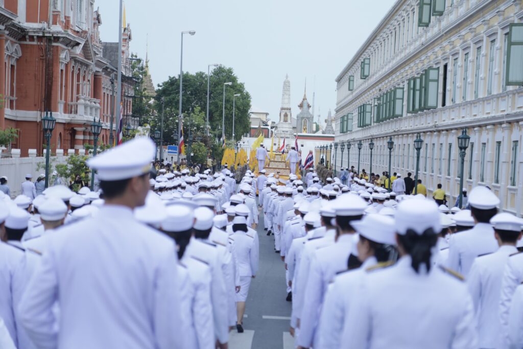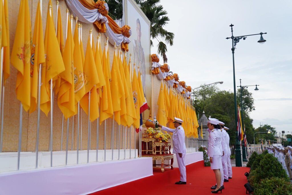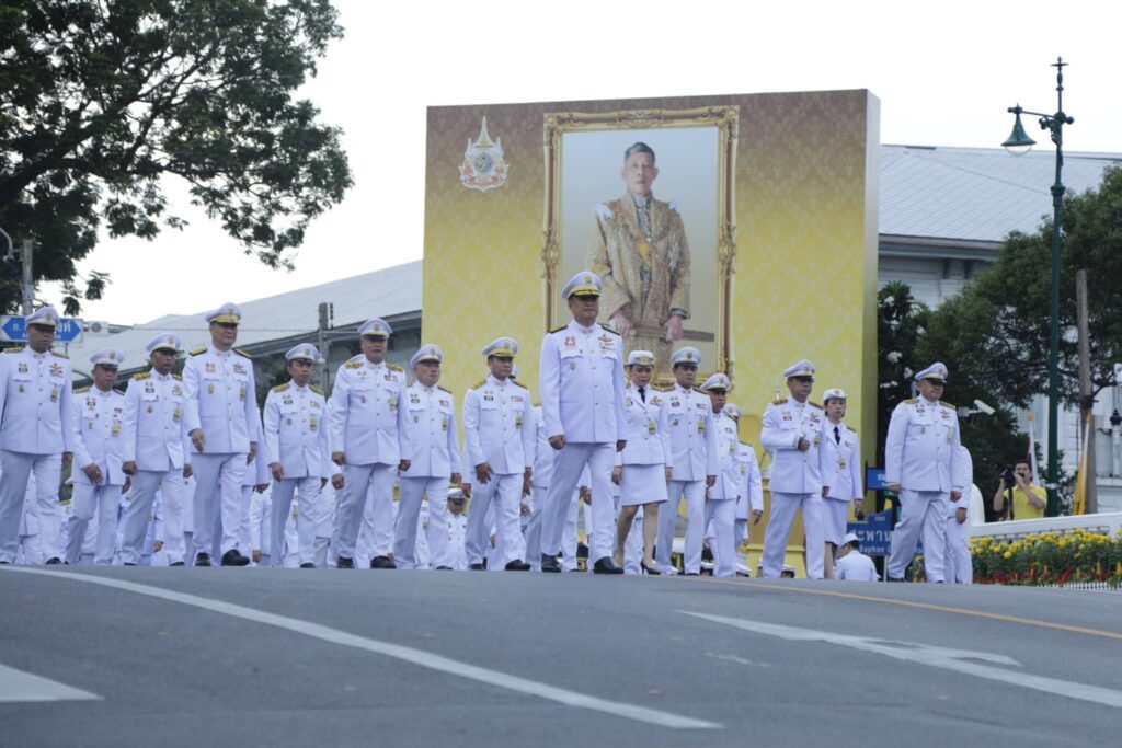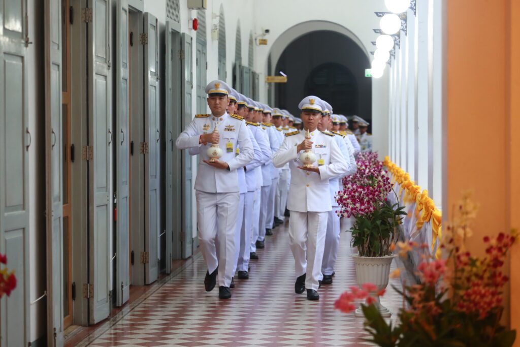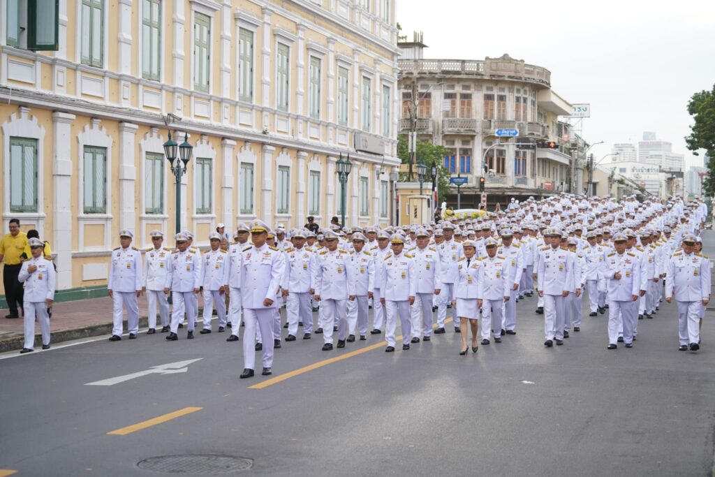 โอกาสนี้ ผู้เชิญคนโทน้ำพระพุทธมนต์ศักดิ์สิทธิ์ของทุกจังหวัด และกรุงเทพมหานคร จำนวน 77 คนโท ออกจากห้องประชุมดำรงธรรม เดินลงจากศาลาว่าการกระทรวงมหาดไทยทางบันไดหน้ามุข และเชิญขึ้นจัดวางบนรถเชิญคนโทน้ำพระพุทธมนต์ศักดิ์สิทธิ์ บริเวณถนนอัษฎางค์ ด้านหน้าศาลาว่าการกระทรวงมหาดไทย จากนั้น นายอนุทิน ชาญวีรกูล รองนายกรัฐมนตรีและรัฐมนตรีว่าการกระทรวงมหาดไทย นำผู้ร่วมพิธีถวายความเคารพ และถวายธูปเทียนแพเบื้องหน้าพระบรมฉายาลักษณ์พระบาทสมเด็จพระเจ้าอยู่หัว และเคลื่อนขบวนไปยังวัดพระเชตุพนวิมลมังคลาราม ราชวรมหาวิหาร โดยใช้ถนนอัษฎางค์ เลี้ยวซ้ายข้ามสะพานช้างโรงสี เคลื่อนตรงไปตามถนนกัลยาณไมตรี ผ่านกระทรวงกลาโหม เลี้ยวซ้ายหน้าวัดพระศรีรัตนศาสดาราม เข้าถนนสนามไชย เคลื่อนตรงไปจนถึงบริเวณหน้าวัดพระเชตุพนวิมลมังคลาราม ราชวรมหาวิหาร