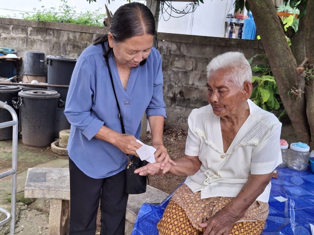 เมื่อไปถึงได้พบกับ นาง ประครอง ซึ่งป่วยเป็นโรคหลอดเลือดตีบ เดินไปไหนมาไหนไม่ได้ต้องใช้ไม้ค้ำ 4 ขา เวลาเดิน และมีอาการหูไม่ค่อยได้ยินตามองไม่ค่อยเห็นอาศัยอยู่กับสามีที่มีขาพิการ(ขาขาด)เนื่องจากเกิดอุบัติเหตุรถชนเมื่อหลายปีก่อน นางประครอง เล่าว่า ตนเองเป็นคนกำแพงเพรช ออกจากบ้านมาตั้งแต่อายุ 25 ปี ซึ่งไม่เคยได้กลับบ้านเลยจึงไม่ได้ต่อบัตรประชาชน(สมัยก่อนการต่อบัตรต้องไปต่อภูมิลำเนา)จึงไม่ได้รับสิทธิการรักษาโรพยาบาล สิทธิผู้สูงอายุ สิทธิต่างๆที่ทางรัฐจัดสวัสดิการให้ ประกอบกับตนเองอ่านหนังสือไม่ออกเขียนไม่ได้ เพราะไม่ได้เรียนหนังสือ นางประครองมีลูกชาย 1 คน แต่ปัจจุบันไม่รู้ไปอยู่ที่ไหน และเคยได้ประสานขอความช่วยเหลือจากหน่วยงานบางหน่วยงานแต่ก็ไร้วี่แววที่จะได้รับบัตรประชาชน