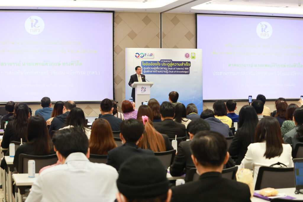 ภายในงานมีการปาฐกถาพิเศษเรื่อง “นโยบายด้านวิทยาศาสตร์ วิจัยและนวัตกรรมเพื่อการพัฒนากำลังคนด้านวิทยาศาสตร์ วิจัยและนวัตกรรม”โดย ศ.เกียรติคุณ ดร.นพ.สิริฤกษ์ ทรงศิวิไลประธานคณะกรรมการส่งเสริมวิทยาศาสตร์ วิจัยและนวัตกรรม และการเสวนา เรื่อง “ไขข้อข้องใจ ประตูสู่ความสำเร็จ ศูนย์รวมผู้เชี่ยวชาญ (Hub of Talents) และศูนย์กลางด้านความรู้ (Hub of Knowledge)” ดำเนินการเสวนาโดย ศ.กิตติคุณ นพ.สุทธิพร จิตต์มิตรภาพ ประธานคณะทำงานที่ปรึกษาเพื่อการพัฒนาศูนย์รวมผู้เชี่ยวชาญ (Hub of Talents) และศูนย์กลางด้านความรู้ (Hub of Knowledge) ผู้ร่วมเสวนา ดร.วิภารัตน์ ดีอ่อง