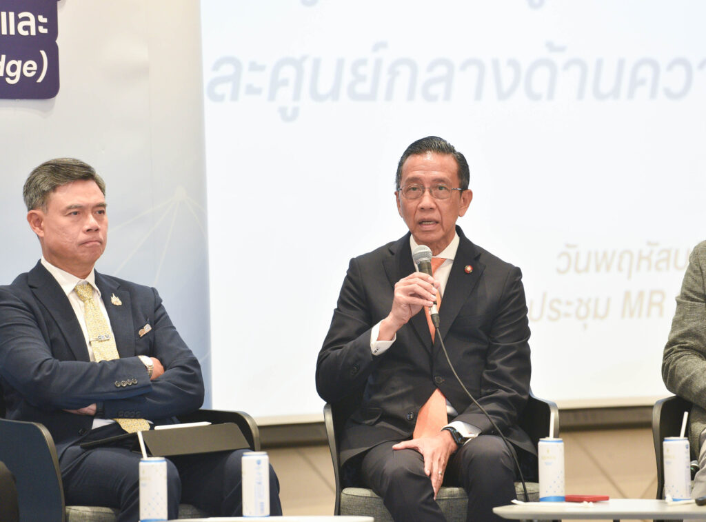 ผู้อำนวยการสำนักงานการวิจัยแห่งชาติ พร้อมด้วย ศ.ดร.บัณฑิต เอื้ออาภรณ์ กรรมการผู้ทรงคุณวุฒิด้านวิทยาศาสตร์ คณะกรรมการส่งเสริมวิทยาศาสตร์ วิจัยและนวัตกรรม ศ.ดร.นพ.พงษ์รักษ์ ศรีบัณฑิตมงคล อธิการบดื่มหาวิทยาลัยเชียงใหม่ และประธานที่ประชุมอธิการบดีแห่งประเทศไทย ดร.บดินทร์ เกษมเศรษฐ์ CEO บริษัท ชิลิคอน คราฟท์ เทคโนโลยี จำกัด (มหาชน) และ คุณปณต บุณยะโหตระ ที่ปรึกษากระทรวงพาณิชย์ และอดีตผู้อำนวยการสำนักงานส่งเสริมการค้าในต่างประเทศ ณ เมืองดูไบ สหรัฐอาหรับเอมิเรตส์ ร่วมเสวนาในครั้งนี้