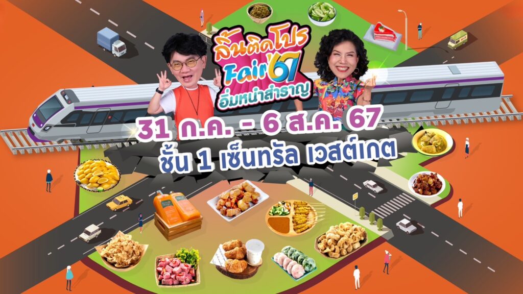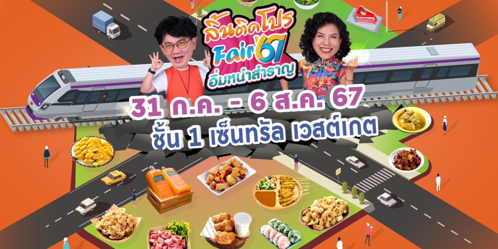 กลับมาตามคำเรียกร้อง ช้อปกระหน่ำ!! ของกินอร่อยจุใจ!! ในงาน ลิ้นติดโปรแฟร์’67 อิ่มหนำสำราญ ช้อปแบบชิลๆกับสองเพื่อนซี้ ก้อง ปิยะ เศวตพิกุล และ ท็อป ดารณีนุช ปสุตนาวิน ยกนิ้วการันตีความอร่อย ขนขบวนร้านค้าจัดเต็มพื้นที่ กว่า 100 ร้านค้า พร้อมอาหารคาว หวาน กว่า 1,000 เมนู ละลานตา กลิ่นหอมชวนหิว ยั่วๆ ทั่วทุกโซน พร้อมโปรฯ เด็ด ของดี ทุกร้านจัดเต็มแน่นจุกๆ ตั้งแต่วันที่ 31 กรกฎาคม ถึง 6 สิงหาคม นี้ 7 วันเต็ม !!! ณ ลานโปรโมชั่น ชั้น 1 ศูนย์การค้าเซ็นทรัล เวสต์เกต
