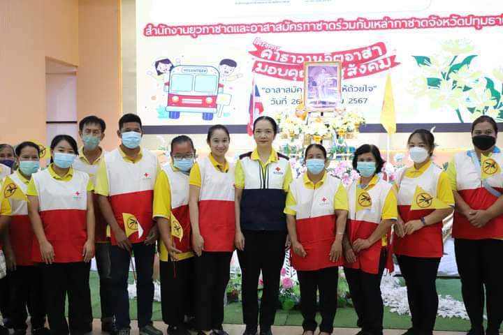 เมื่อวันที่ 26 ก.ค. 67 เวลา 09.30 น. ที่โรงเรียนเตรียมอุดมศึกษาน้อมเกล้า ปทุมธานี สำนักงานยุวกาชาดและอาสาสมัครกาชาด สภากาชาดไทย ร่วมกับสำนักงานเหล่ากาชาดจังหวัดปทุมธานี จัดโครงการคาราวานจิตอาสา มอบคุณค่าสู่สังคม ภายใต้แนวคิดกิจกรรม “อาสาสมัครกาชาด ให้ด้วยใจ” โดยมีอาสาสมัครกาชาดจากกรุงเทพมหานคร นำโดย นางสุนันทา ศรอนุสิน ผู้อำนวยการสำนักงานยุวกาชาด พร้อมด้วย นางบุษบา บุญญลักษม์ นายกเหล่ากาชาดจังหวัดปทุมธานี นางฉวีวรรณ คอวิเชียรกุล รองนายกเหล่ากาชาดจังหวัดปทุมธานี ทีี่ปรึกษาคณะกรรมการและสมาชิกเหล่ากาชาดจังหวัดปทุมธานี นายศรัณย์ เกตุทอง นายอำเภอสามโคก กำนัน ผู้ใหญ่บ้าน นักเรียนและจิตอาสาพระราชทาน และอาสาสมัครกาชาดในพื้นที่ ร่วมกิจกรรม โดยคาราวานจิตอาสา มอบคุณค่าสู่สังคม ดำเนินกิจกรรมเป็น 3 ส่วน ได้แก่ 1. กิจกรรมมอบคุณค่าสู่การบำรุงวัด ร่วมกันถวายสังฆทานพระสงฆ์ ขัดล้างห้องน้ำ ทำความสะอาดกวาดขยะ ปรับภูมิทัศน์ ณ วัดป่าภูริทัตตปฏิปทาราม ต.คลองควาย 2. กิจกรรมมอบคุณค่าสู่โรงเรียน ดำเนินการพัฒนาทาสีรั้วโรงเรียน มอบตู้ยา พันธุ์ผัก ปลูกผักสวนครัว และถ่ายทอดองค์ความรู้เรื่องการปฐมพยาบาลขั้นพื้นฐาน พร้อมมอบหุ่น CPR จำนวน 100 ตัว ให้แก่โรงเรียนเตรียมอุดมศึกษาน้อมเกล้า ปทุมธานี และ 3. กิจกรรมมอบคุณค่าสู่ชุมชน มอบชุดธารน้ำใจแก่ประชาชนกลุ่มเปราะบาง จำนวน 50 ชุด มอบเครื่องอุปโภค บริโภคแก่ครอบครัวผู้สูงอายุ ผู้ป่วยติดเตียง จำนวน 10 ครอบครัว พร้อมให้บริการตัดผมแก่ประชาชนฟรี
