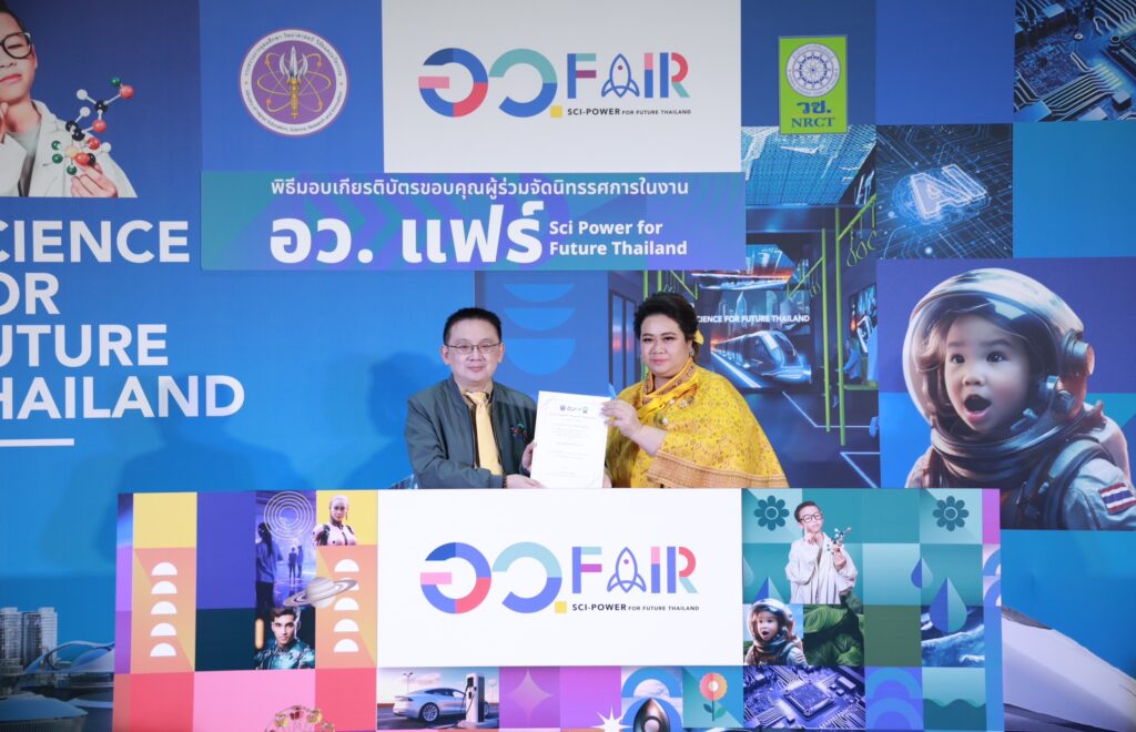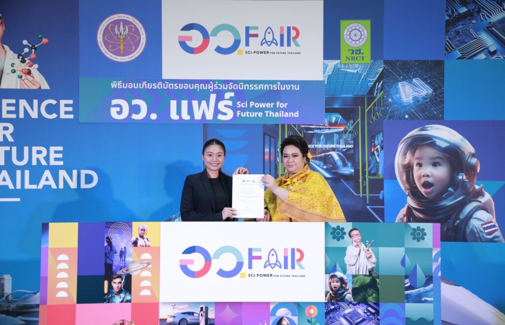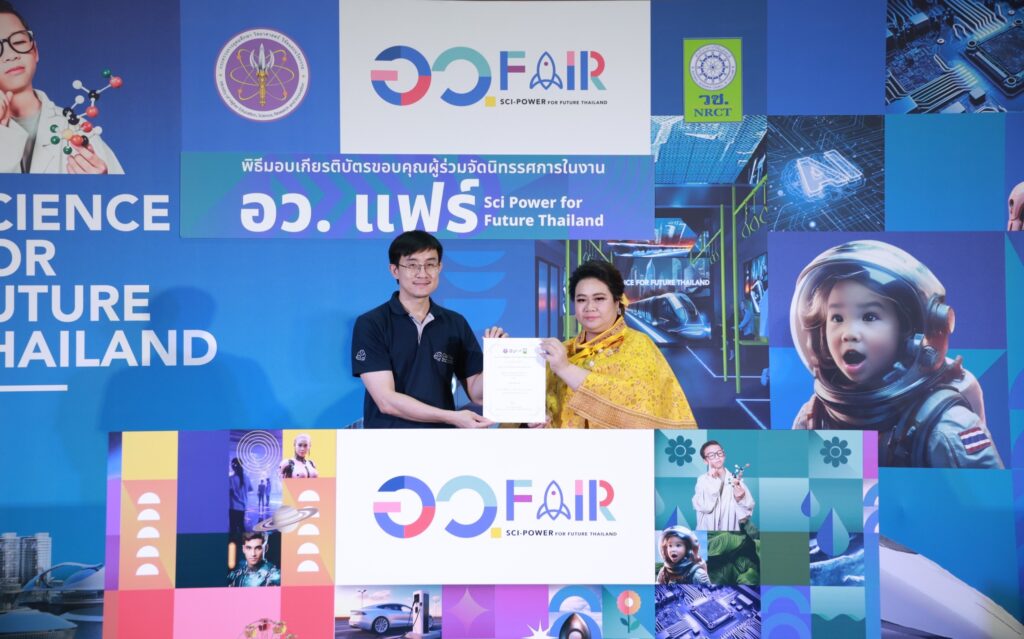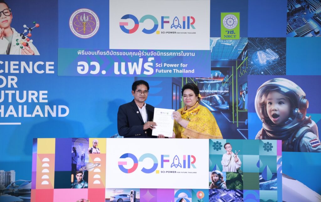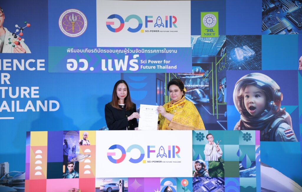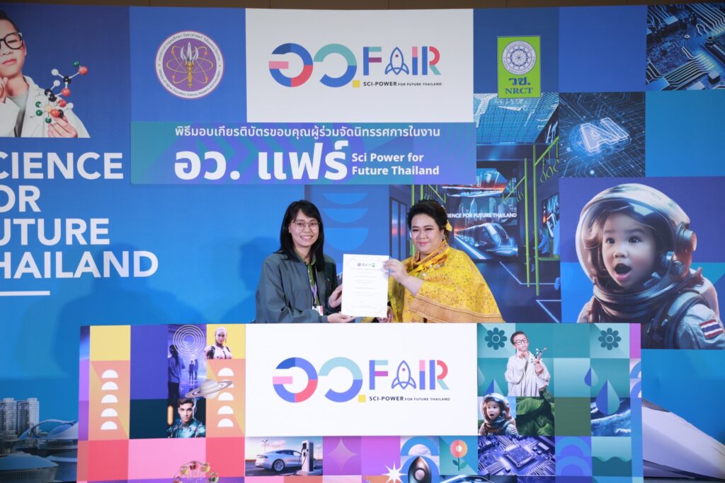 เมื่อวันที่ 27 กรกฎาคม 2567 ณ พื้นที่นิทรรศการของNRCT โซน F : นางสาวศุภมาส อิศรภักดี รัฐมนตรีว่าการกระทรวงการอุดมศึกษา วิทยาศาสตร์ วิจัยและนวัตกรรม เป็นประธานในพิธีมอบประกาศนียบัตรแสดงความยินดีแก่ Hub of Talents & Knowledge for All และภาคเอกชน ที่ร่วมนำเสนอผลงานและจัดนิทรรศการในงาน อว.แฟร์: SCI POWER FOR FUTURE THAILAND ซึ่งจัดระหว่างวันที่ 22–28 กรกฎาคม 2567 โดยมีนางสาวสุชาดา แทนทรัพย์ เลขานุการรัฐมนตรีกระทรวง (อว.) ศ.ดร.ศุภชัย ปทุมนากุล รองปลัดกระทรวง อว. ศ.เกียรติคุณ ดร.นพ.สิริฤกษ์ ทรงศิวิไล ประธานคณะกรรมการส่งเสริมวิทยาศาสตร์ วิจัยและนวัตกรรม ดร.วิภารัตน์ ดีอ่อง ผู้อำนวยการสำนักงานการวิจัยแห่งชาติ และผู้บริหาร (อว.) เข้าร่วมกิจกรรม ณ Mini Stage โซน F ศูนย์การประชุมแห่งชาติสิริกิติ์