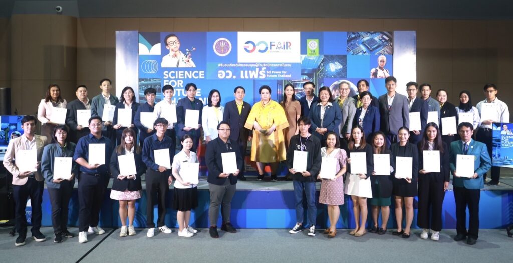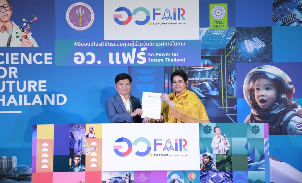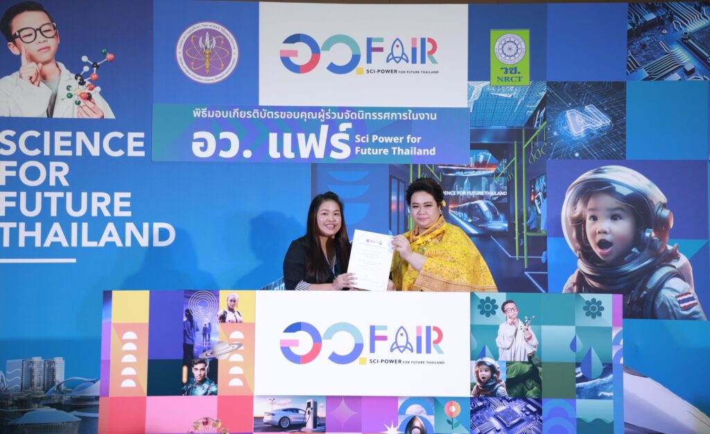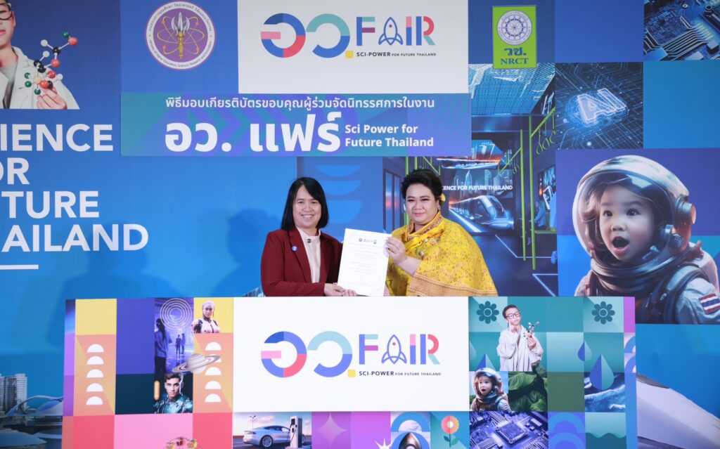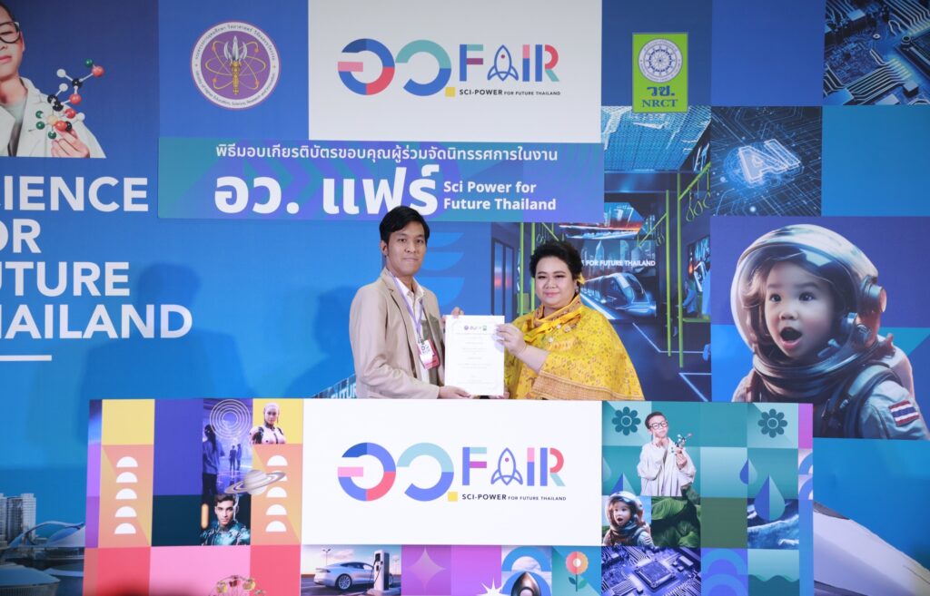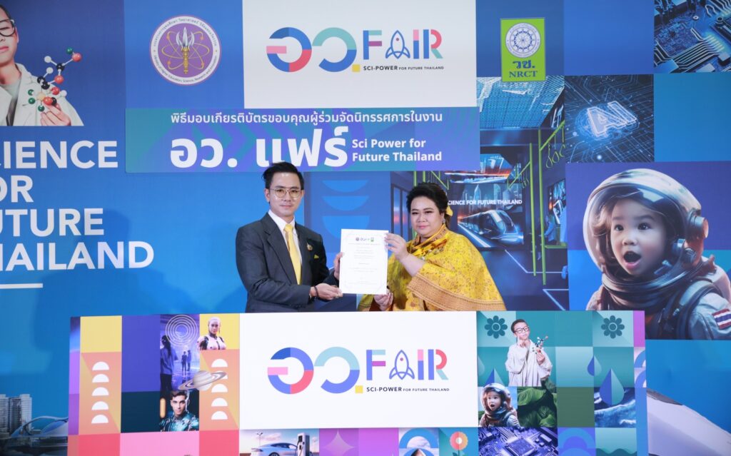 เมื่อวันที่ 27 กรกฎาคม 2567 ณ พื้นที่นิทรรศการของNRCT โซน F : นางสาวศุภมาส อิศรภักดี รัฐมนตรีว่าการกระทรวงการอุดมศึกษา วิทยาศาสตร์ วิจัยและนวัตกรรม เป็นประธานในพิธีมอบประกาศนียบัตรแสดงความยินดีแก่ Hub of Talents & Knowledge for All และภาคเอกชน ที่ร่วมนำเสนอผลงานและจัดนิทรรศการในงาน อว.แฟร์: SCI POWER FOR FUTURE THAILAND ซึ่งจัดระหว่างวันที่ 22–28 กรกฎาคม 2567 โดยมีนางสาวสุชาดา แทนทรัพย์ เลขานุการรัฐมนตรีกระทรวง (อว.) ศ.ดร.ศุภชัย ปทุมนากุล รองปลัดกระทรวง อว. ศ.เกียรติคุณ ดร.นพ.สิริฤกษ์ ทรงศิวิไล ประธานคณะกรรมการส่งเสริมวิทยาศาสตร์ วิจัยและนวัตกรรม ดร.วิภารัตน์ ดีอ่อง ผู้อำนวยการสำนักงานการวิจัยแห่งชาติ และผู้บริหาร (อว.) เข้าร่วมกิจกรรม ณ Mini Stage โซน F ศูนย์การประชุมแห่งชาติสิริกิติ์