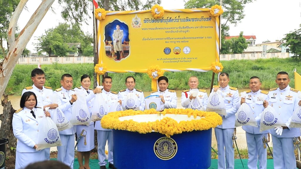 วันที่ 28 กรกฎาคม 2567 เวลา 06.30 น. ที่ หอประชุมอำเภอเมืองลพบุรี จังหวัดลพบุรี นายวชิระ เกตุพันธุ์ รองผู้ว่าราชการจังหวัดลพบุรี นำข้าราชการตุลาการ ทหาร ตำรวจ ข้าราชการพลเรือน พร้อมด้วยพสกนิกรทุกหมู่เหล่า เข้าร่วมพิธีทำบุญตักบาตรพระสงฆ์ จำนวน 73 รูป เจริญพระพุทธมนต์ ถวายพระราชกุศล พร้อมด้วยผู้นำศาสนาอิสลามประกอบพิธีดุอาอ์ขอพร ผู้นำศาสนาคริสต์ประกอบพิธีอธิษฐานภาวนาขอพร เฉลิมพระเกียรติพระบาทสมเด็จพระเจ้าอยู่หัวฯ เนื่องในโอกาสวันเฉลิมพระชนมพรรษา 28 กรกฎาคม 2567 จากนั้นในเวลา 09.00 น. ผู้ว่าราชการจังหวัดฯ ได้นำข้าราชการ และพสกนิกรทุกหมู่เหล่า ทำพิธีปล่อยพันธุ์สัตว์น้ำ จำนวน 200,000 ตัว ณ บริเวณริมคลองชัยนาท-ป่าสัก (สะพาน 7) อำเภอเมืองลพบุรี จังหวัดลพบุรี เพื่อถวายเป็นพระราชกุศลฯ