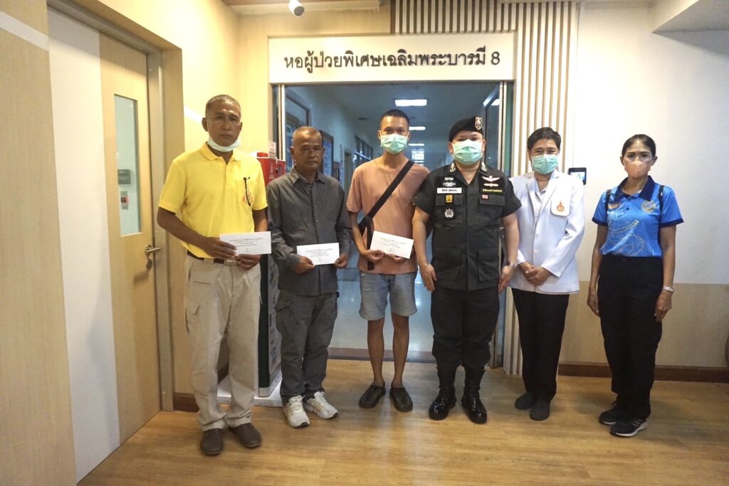 พล.ต.ต.พิทักษ์ฯ เป็นผู้แทนนำข้อห่วงใยของ ผบ.ตร. พร้อมมอบกระเช้าเยี่ยมและเงินบำรุงขวัญให้กับข้าราชการตำรวจทั้ง 11 ราย ในการแสดงความขอบคุณและชื่นชมที่ได้ปฏิบัติหน้าที่ด้วยความมุ่งมั่น เสียสละ มาโดยตลอด